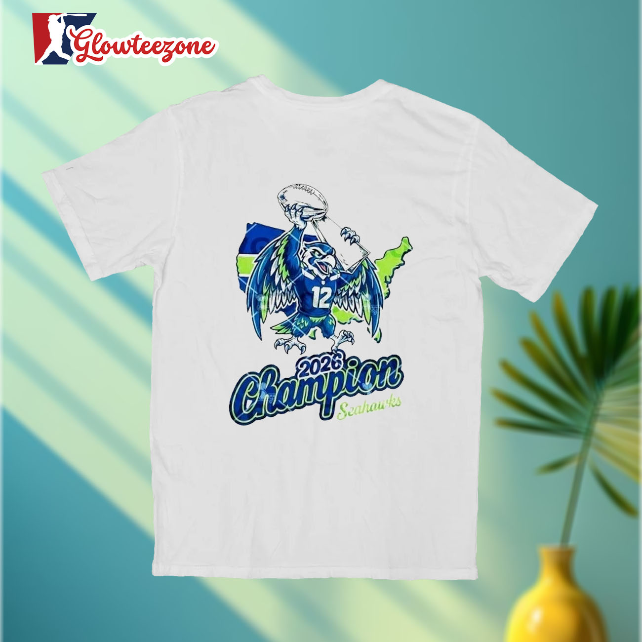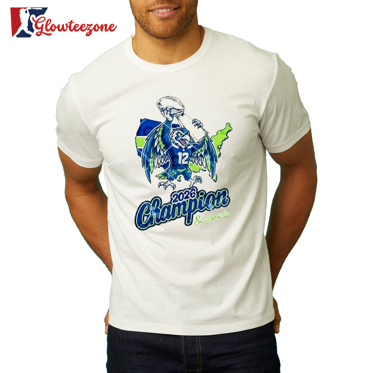Show your belief, your pride, and your loyalty with the 2026 Champion Seahawks Mascot Seattle Seahawks Super Bowl LX T-shirt