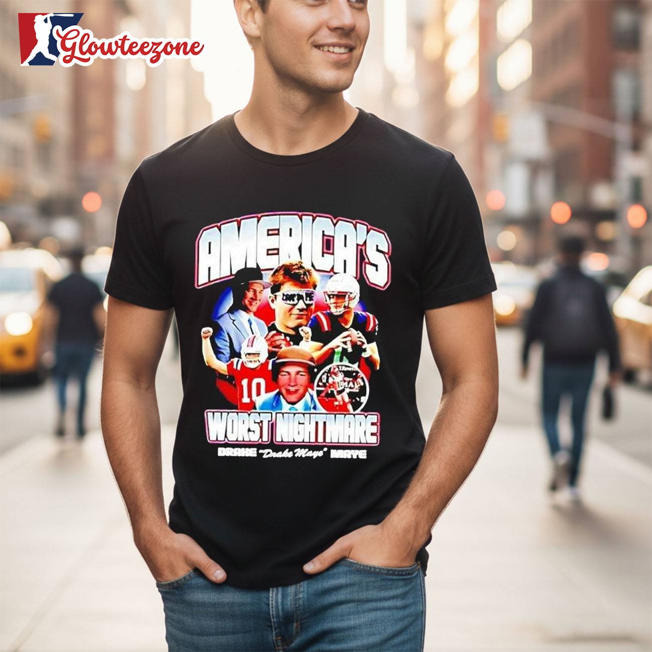 Show your belief, your pride, and your loyalty with the Americas Worst Nightmare Drake Maye New England Patriots Football Shirt
