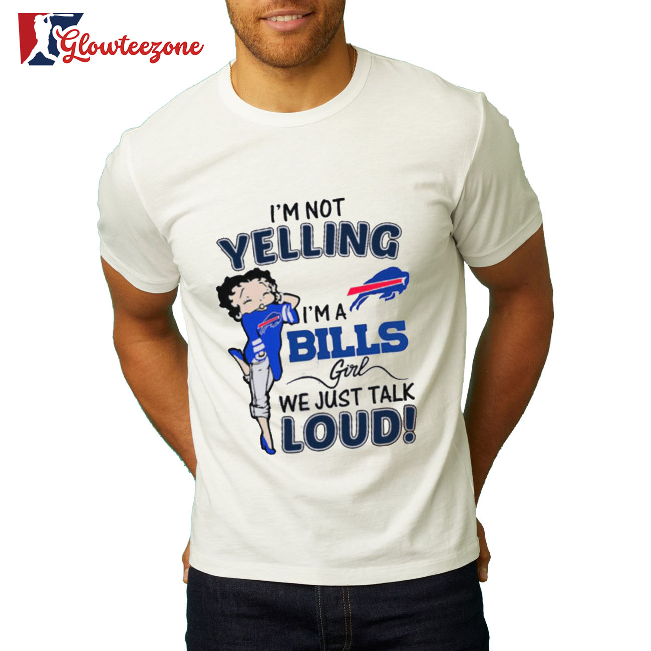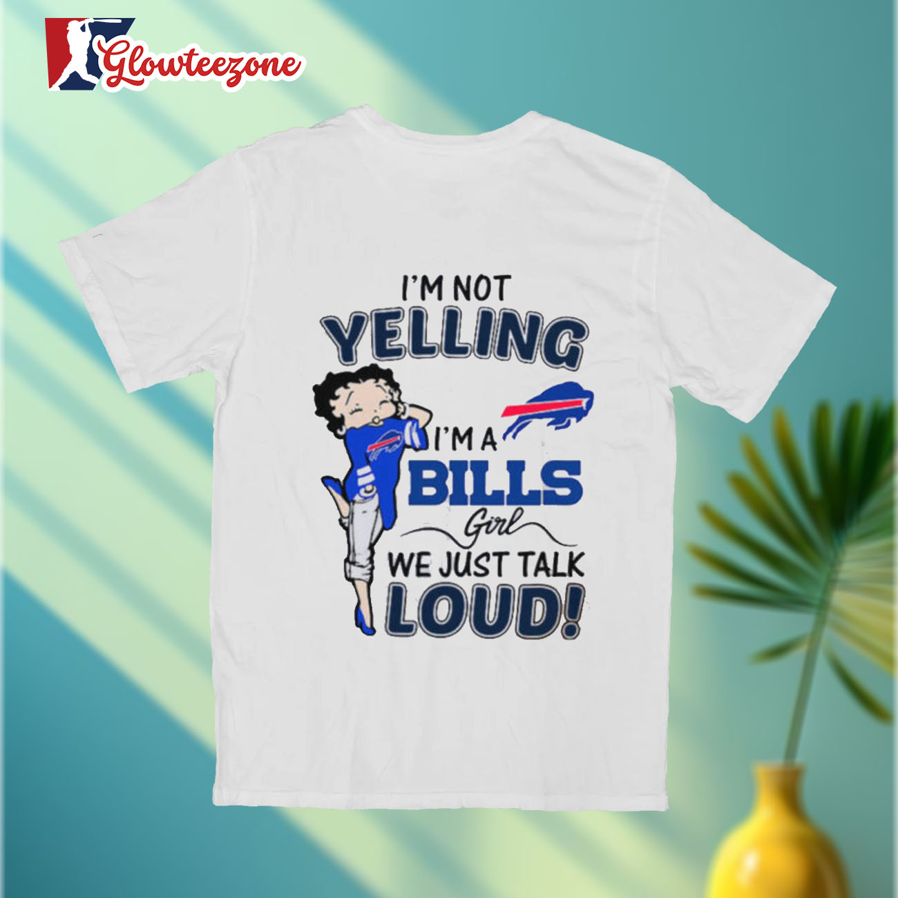 Show your belief, your pride, and your loyalty with the Betty Boop I’m Not Yelling I’m A Buffalo Bills Girl We Just Talk Loud Shirt