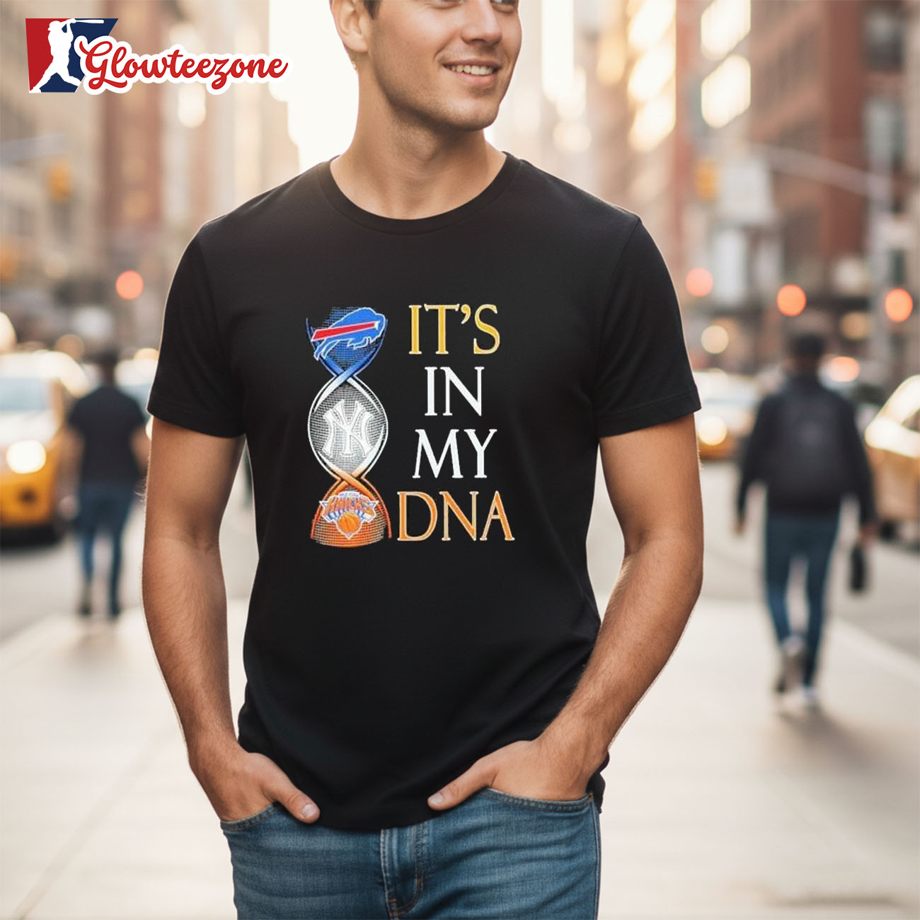 Show your belief, your pride, and your loyalty with the Buffalo Bills New York Yankees And New York Knicks Its In My Dna Shirt