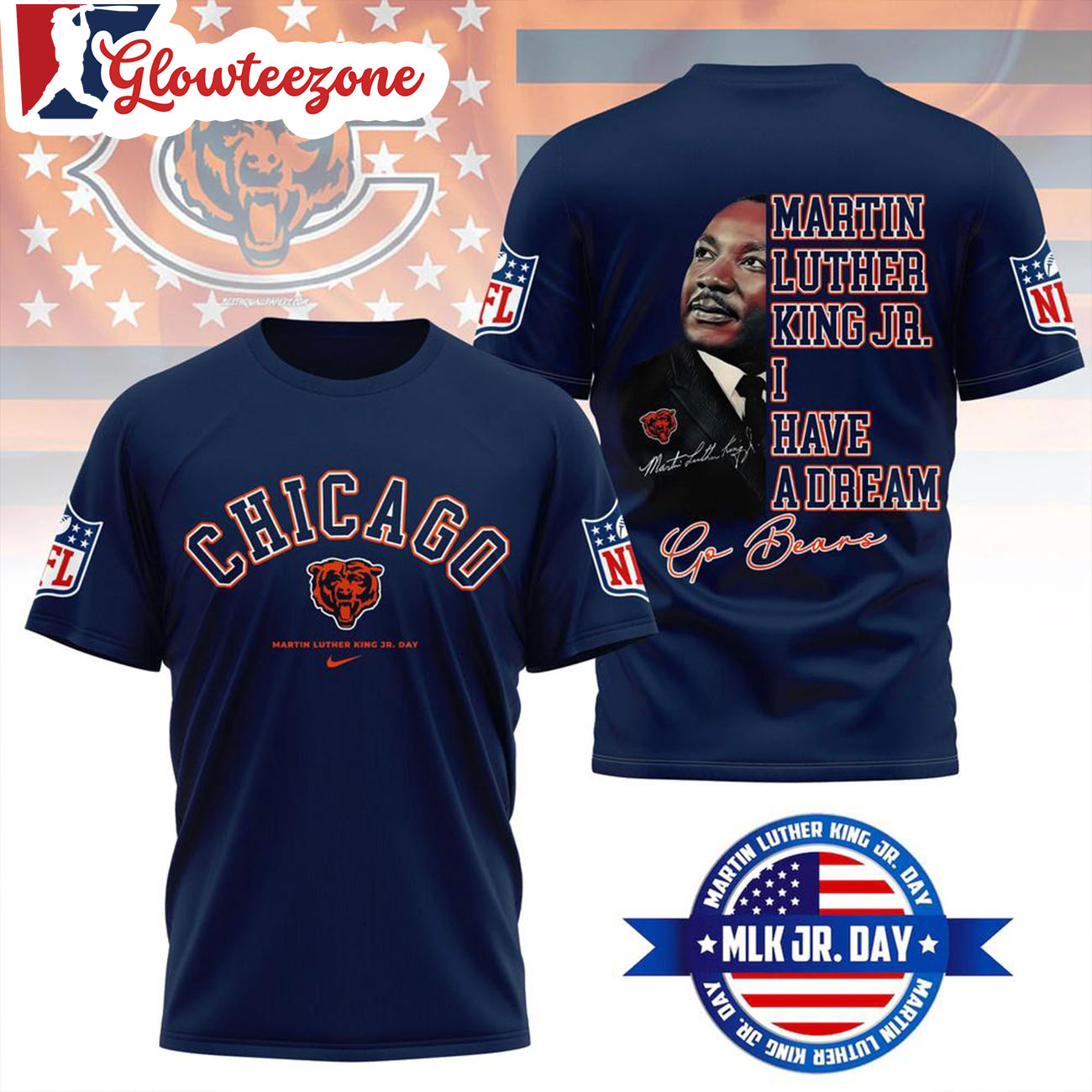 Show your belief, your pride, and your loyalty with the Chicago Bears 2026 NFL Martin Luther King Jr Day 3D T-Shirt Sweatshirt Hoodie.