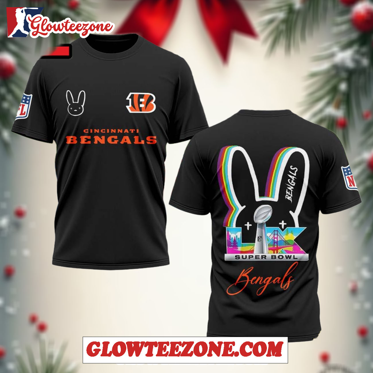 Cincinnati Bengals X Bad Bunny Super Bowl Lx 2026 All Over Print Shirt is more than just fan apparel — it’s a bold statement of passion and pride. Designed exclusively for NFL supporters who love to stand out, this 3D shirt brings your favorite team’s spirit to life with eye-catching, high-definition graphics and premium craftsmanship. Each shirt is printed using advanced sublimation technology, ensuring vivid colors that never fade, crack, or peel — even after countless washes.