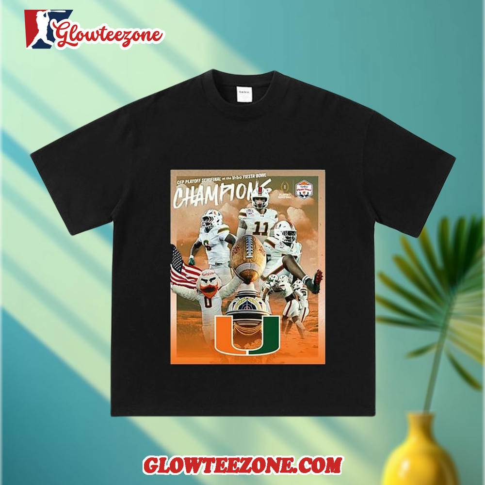 Congrats Miami Hurricanes Champions CFP Playoff Semifinal At The Vrbo Fiesta Bowl Shirt is more than just fan apparel — it’s a clean, confident expression of true team loyalty. Designed for NFL fans who appreciate timeless style with modern attitude, this 2D shirt delivers sharp, high-quality graphics that showcase your favorite team in a bold yet balanced way. Using advanced all-over sublimation printing, every detail is crisp and vibrant, with colors that stay fresh and intact wash after wash — no cracking, peeling, or fading over time.