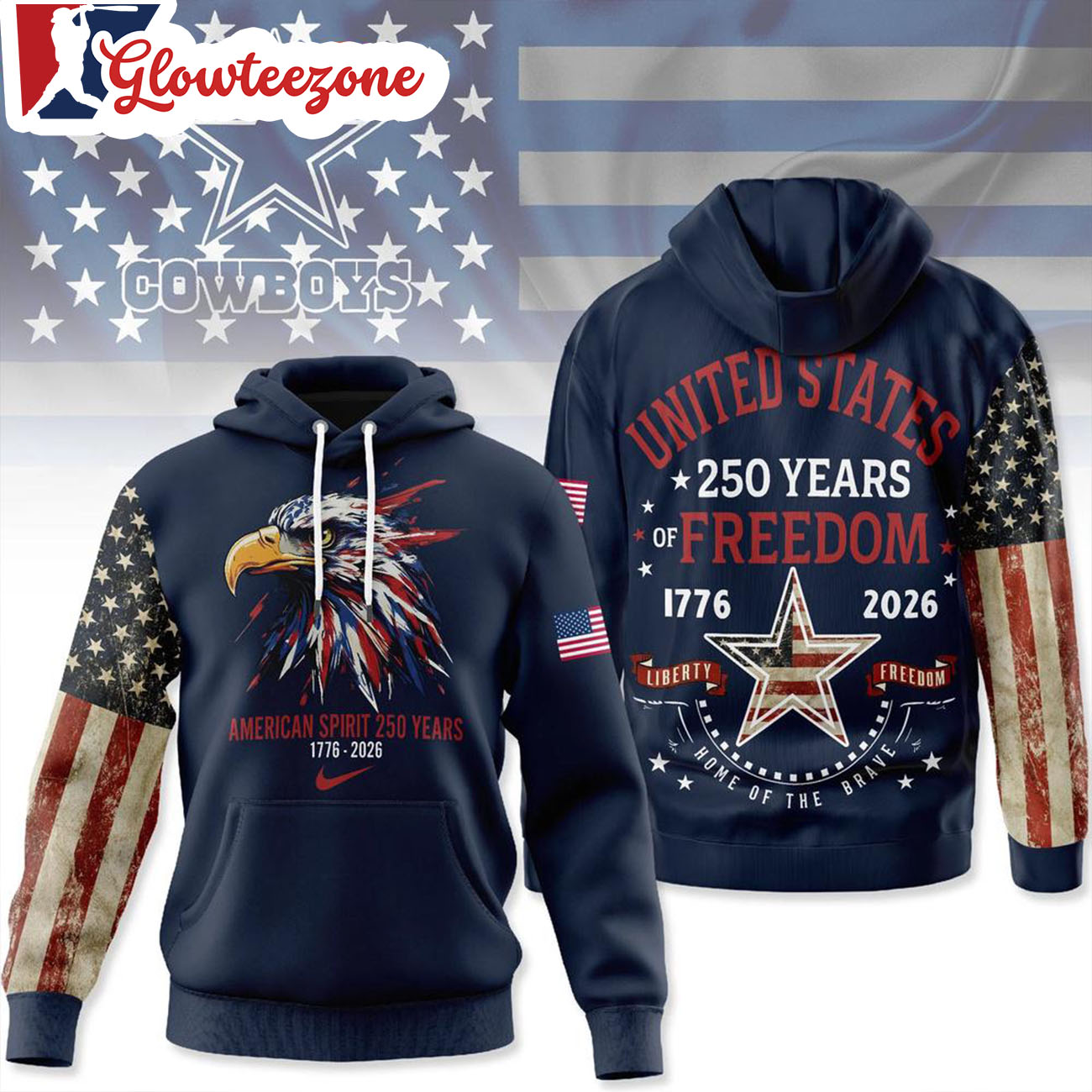 Show your belief, your pride, and your loyalty with the Dallas Cowboys 2026 NFL American Spirit 250 Years Limited 3D T-Shirt Sweatshirt Hoodie.