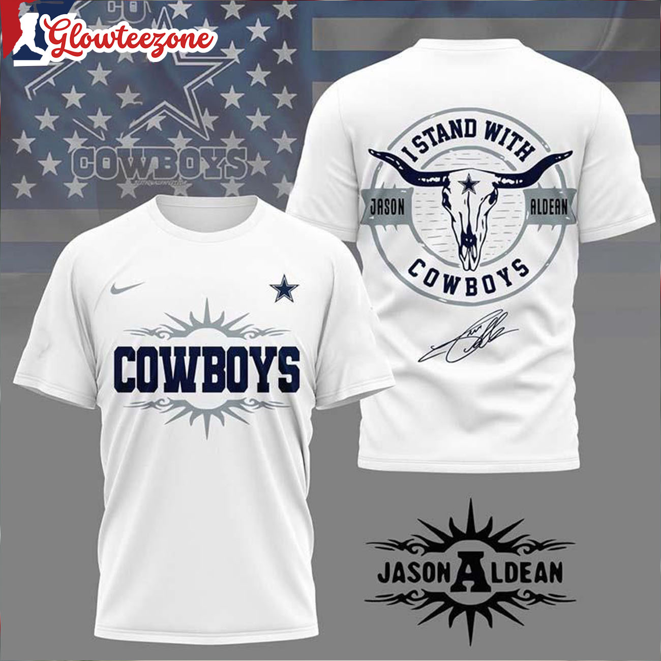 Show your belief, your pride, and your loyalty with the Dallas Cowboys NFL Jason Aldean All Over Print Shirt.