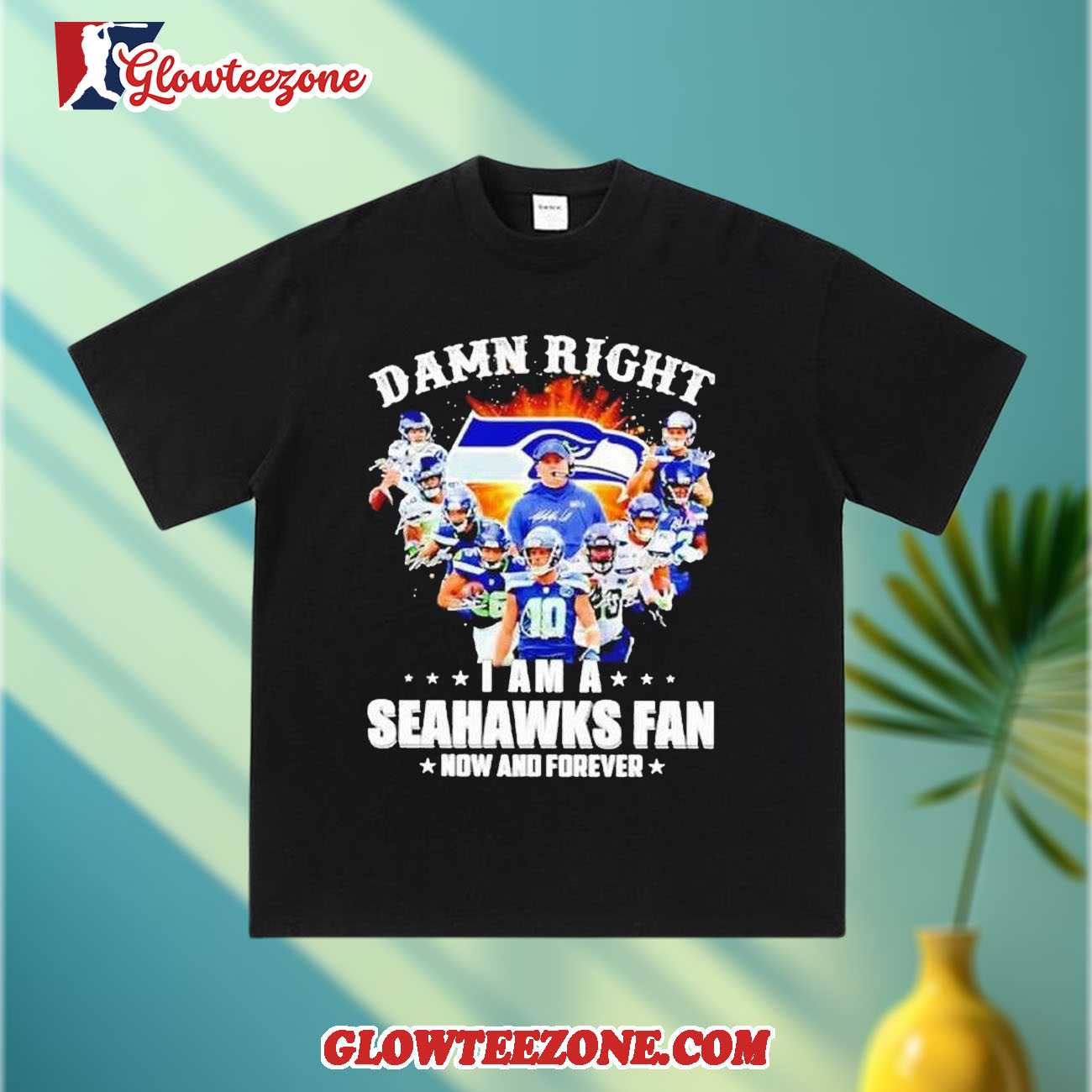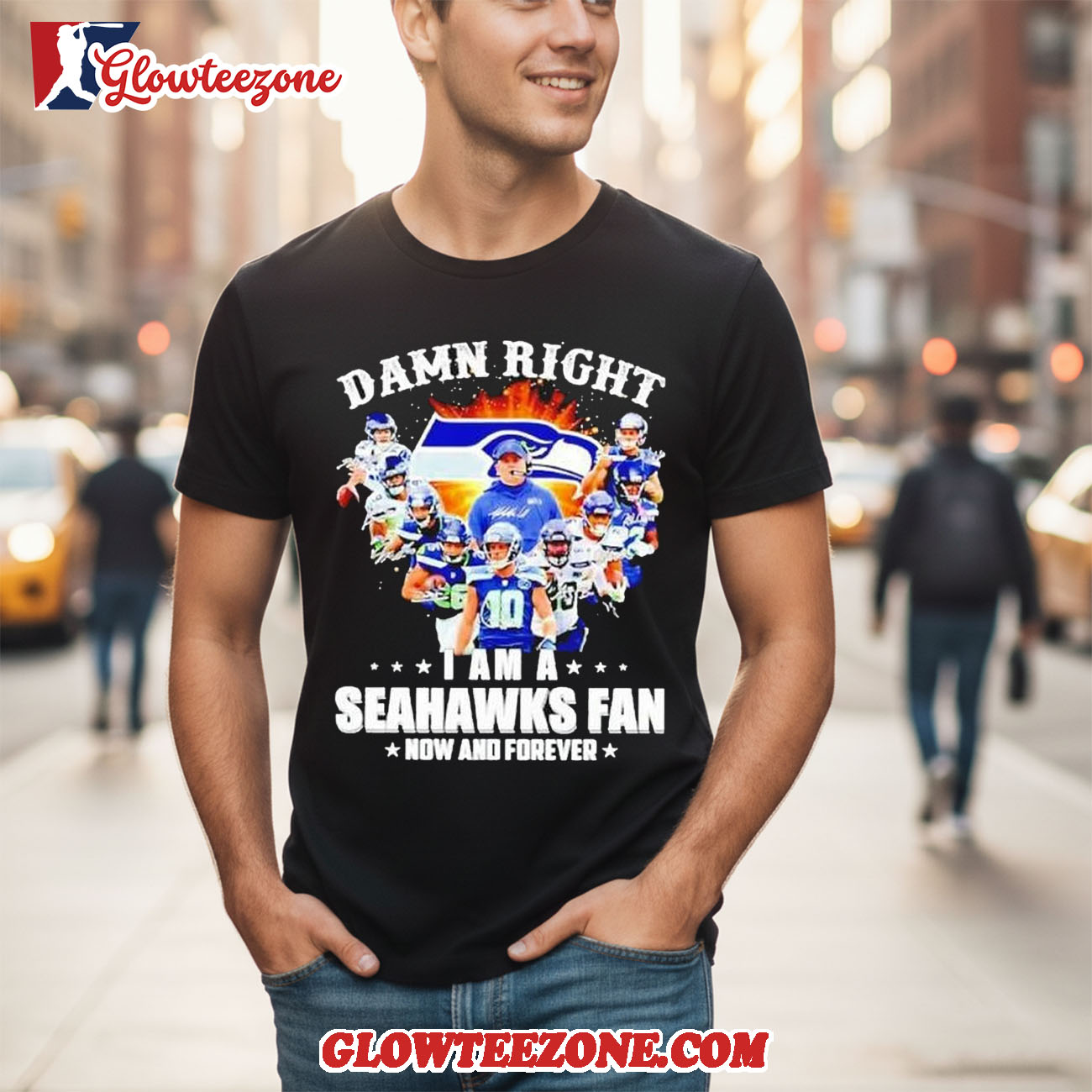 Show your belief, your pride, and your loyalty with the Damn Right I Am A Seattle Seahawks Fan Now And Forever Signature 2026 Shirt