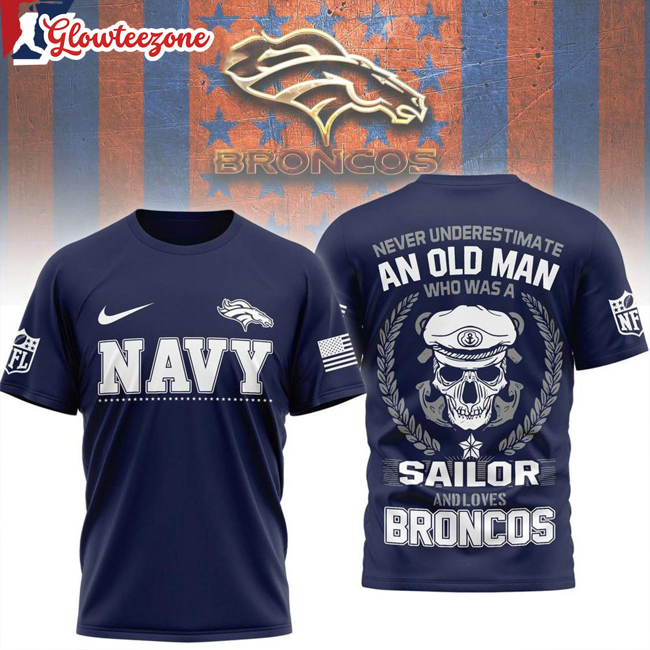 Show your belief, your pride, and your loyalty with the Denver Broncos Nfl Navy Veteran 2026 All Over Print Shirtxxx.
