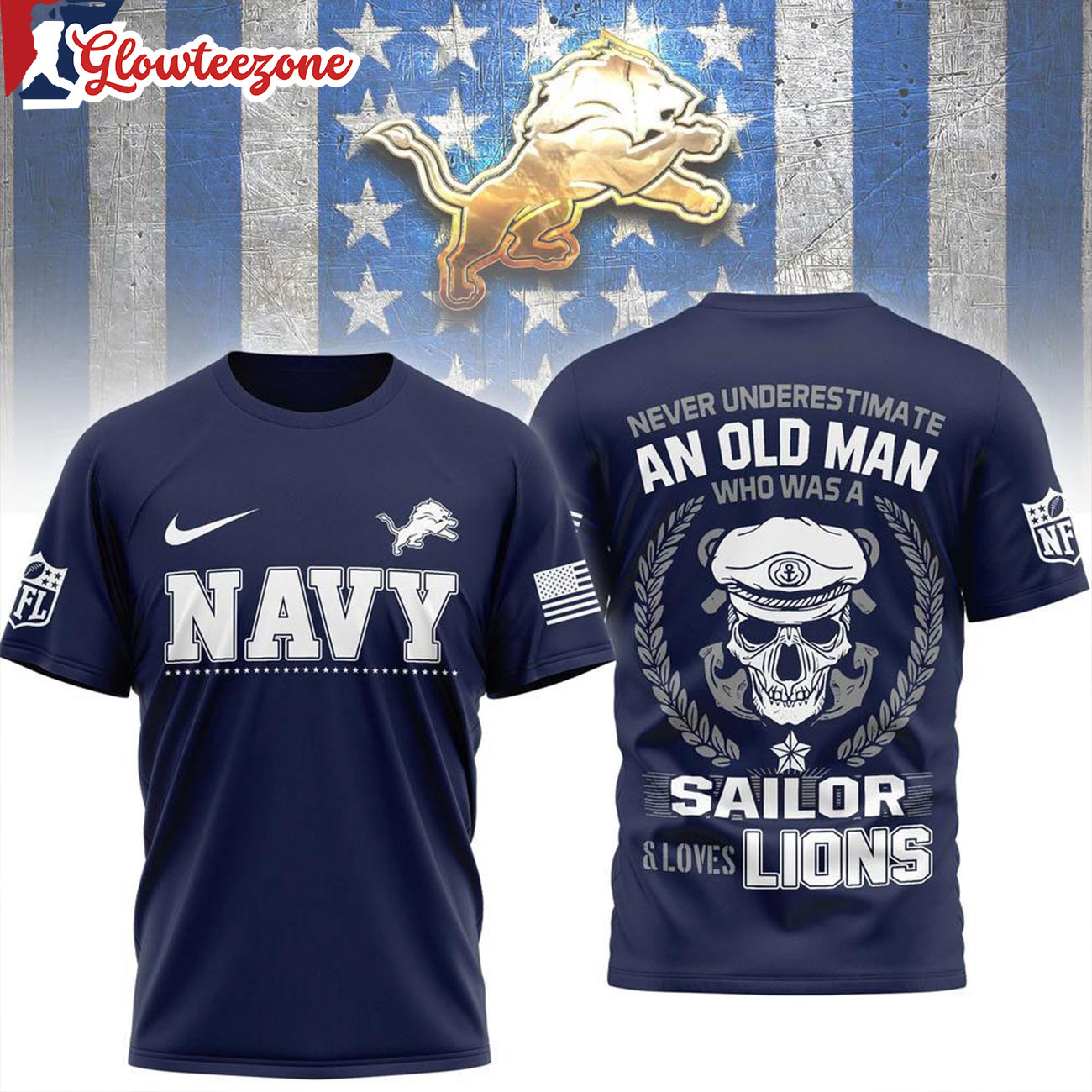 Show your belief, your pride, and your loyalty with the Detroit Lions Nfl Navy Veteran 2026 All Over Print Shirtxxx.