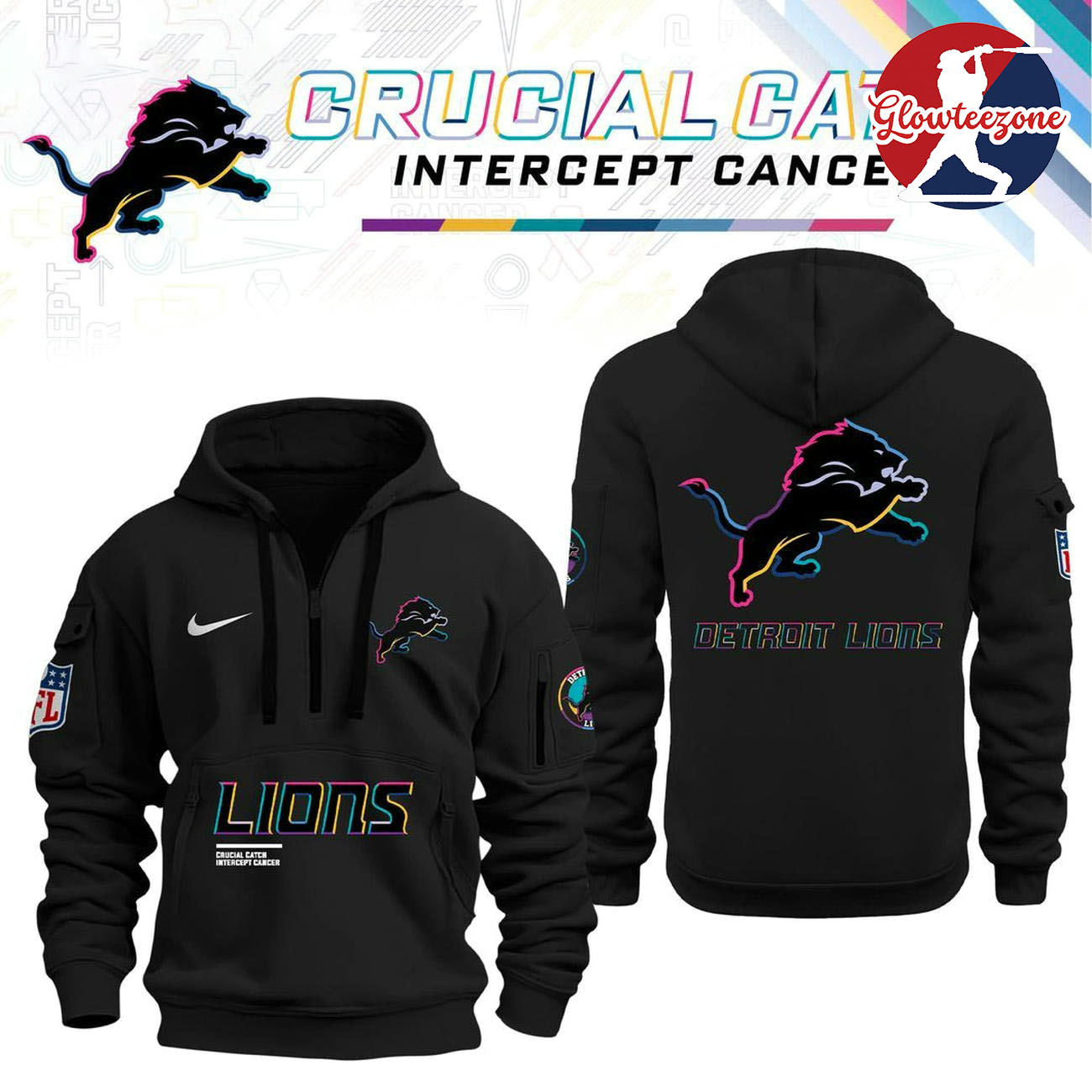 Show your belief, your pride, and your loyalty with the Detroit Lions x Crucial Catch Intercept Cancer Limited Edition Hoodie.