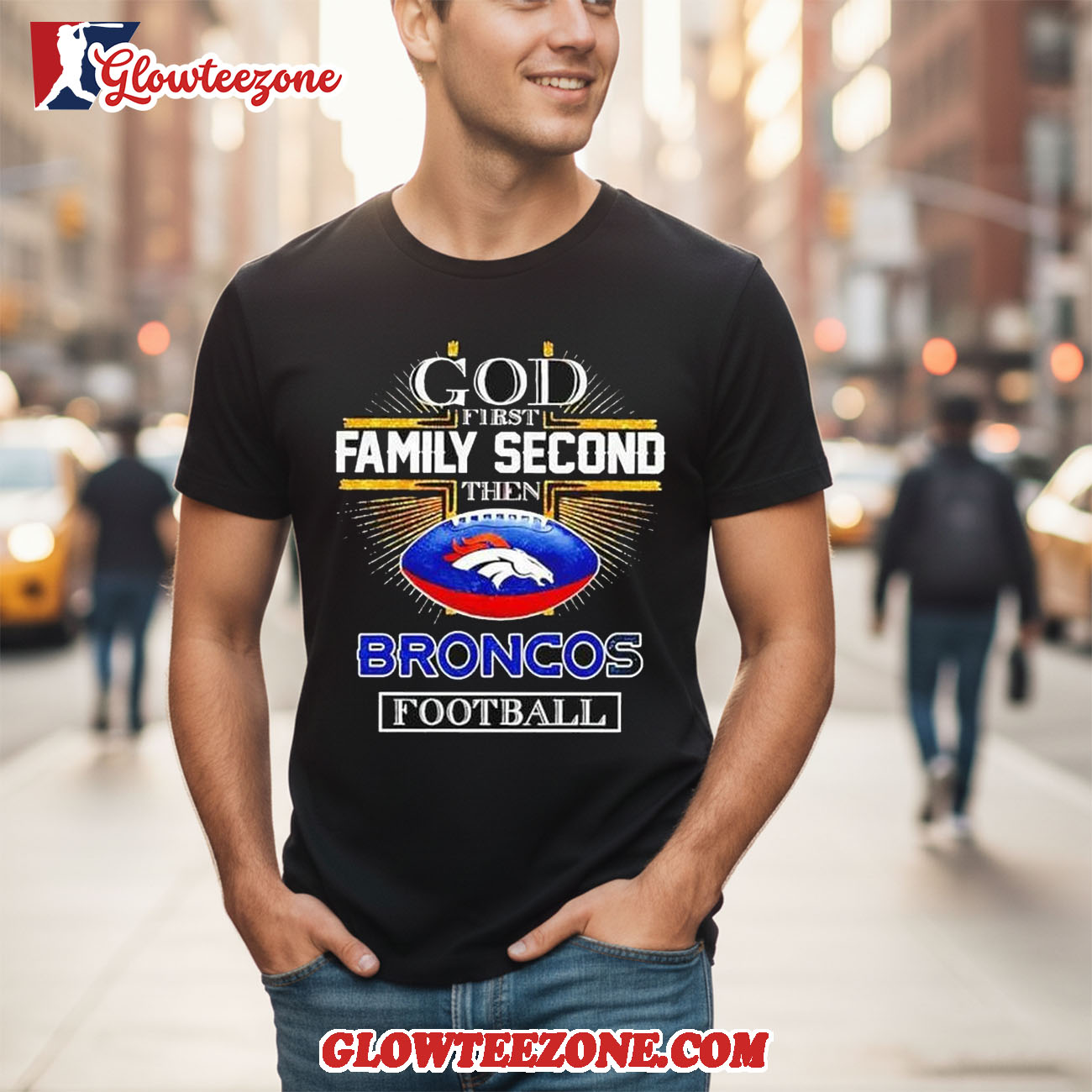 Show your belief, your pride, and your loyalty with the God First Family Second Then Denver Broncos 2026 AFC Division Champions Shirt