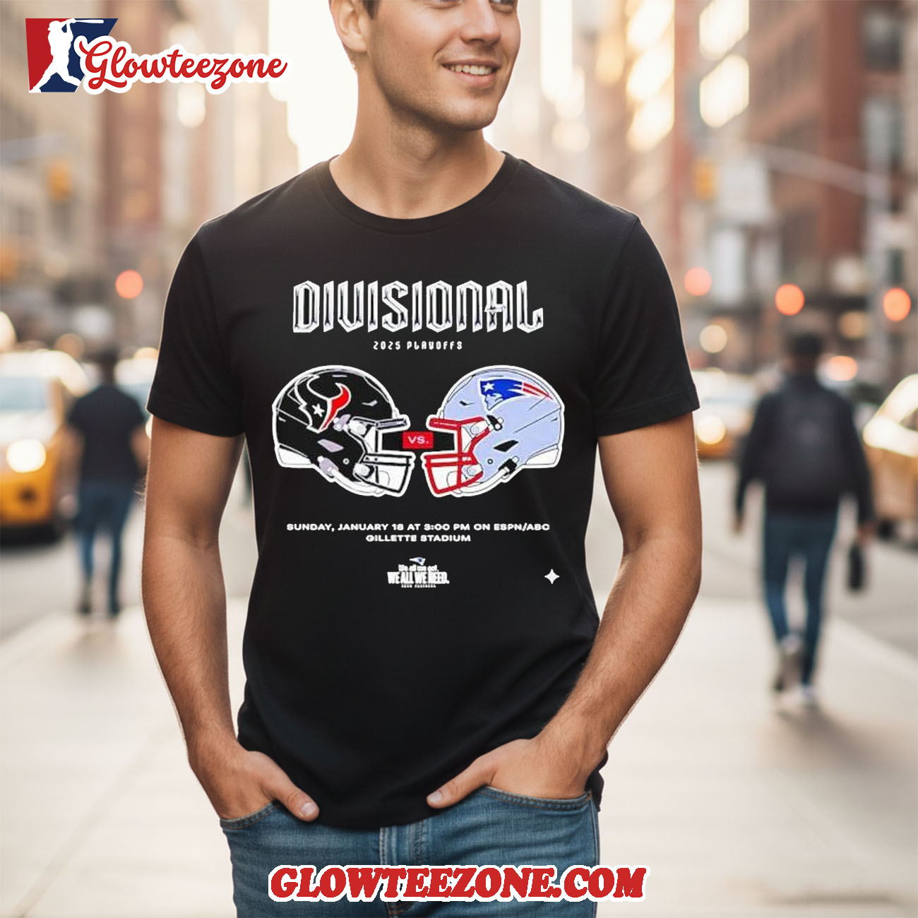 Made from a lightweight, breathable fabric blend with a soft, smooth feel, the Houston Texans vs New England Patriots Divisional Playoffs 2025 Gillette Stadium Helmet Shirt is built for comfort and versatility. It’s perfect for game days, tailgate parties, casual hangouts, or everyday wear when you want to represent your team without overdoing it. The 2D design keeps the look clean and wearable, making it easy to pair with jeans, shorts, or layered outfits.