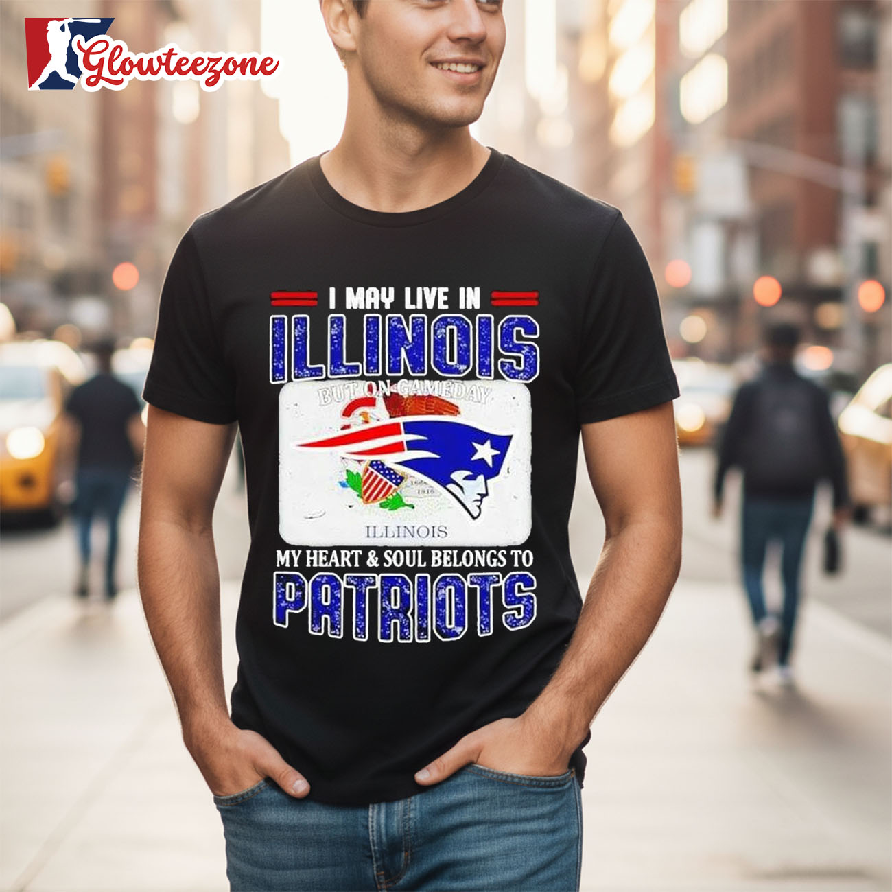 Show your belief, your pride, and your loyalty with the I May Live In Illinois But On Gameday My Heart & Soul Belongs To Patriots Shirt