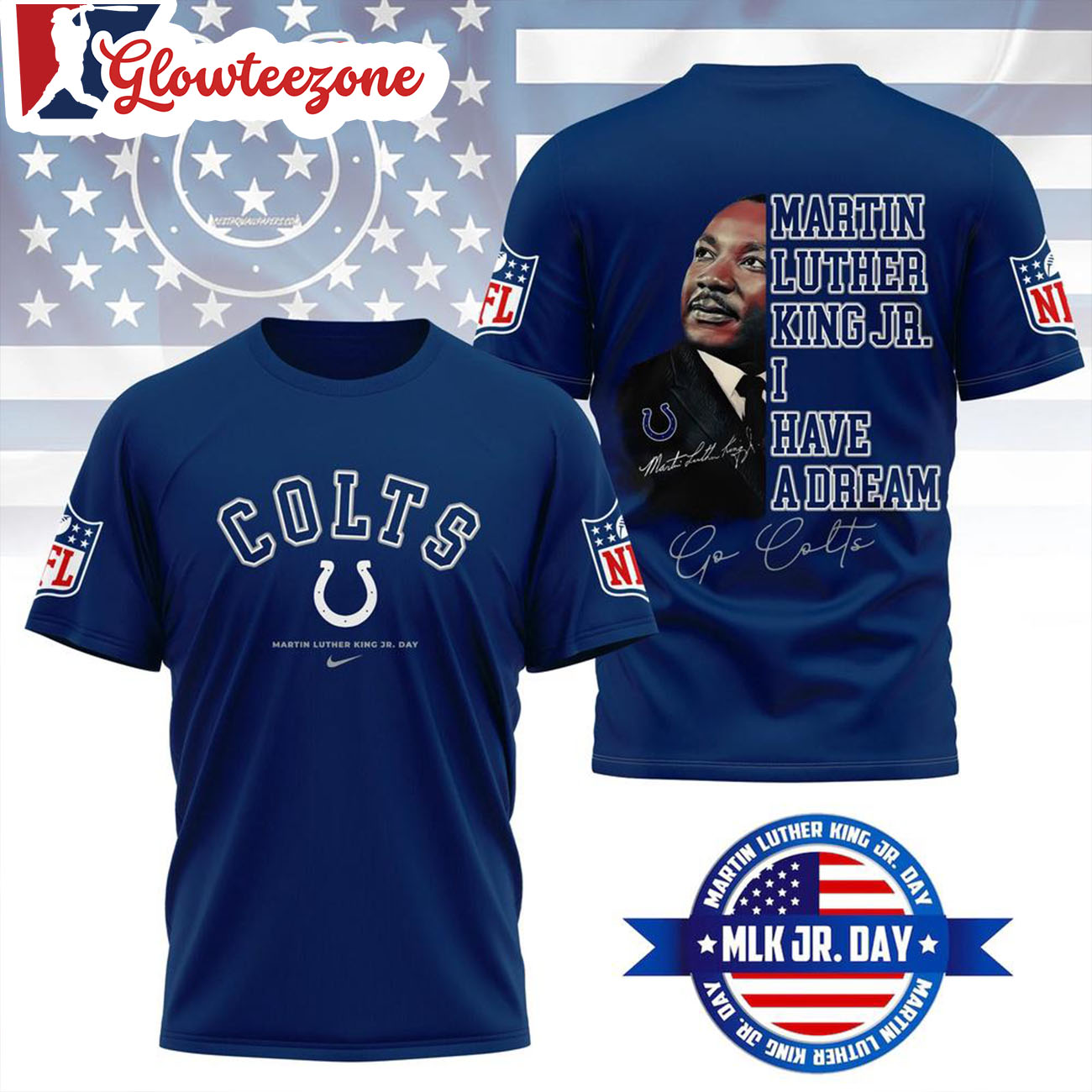 Show your belief, your pride, and your loyalty with the Indianapolis Colts 2026 NFL Martin Luther King Jr Day 3D T-Shirt Sweatshirt Hoodie.