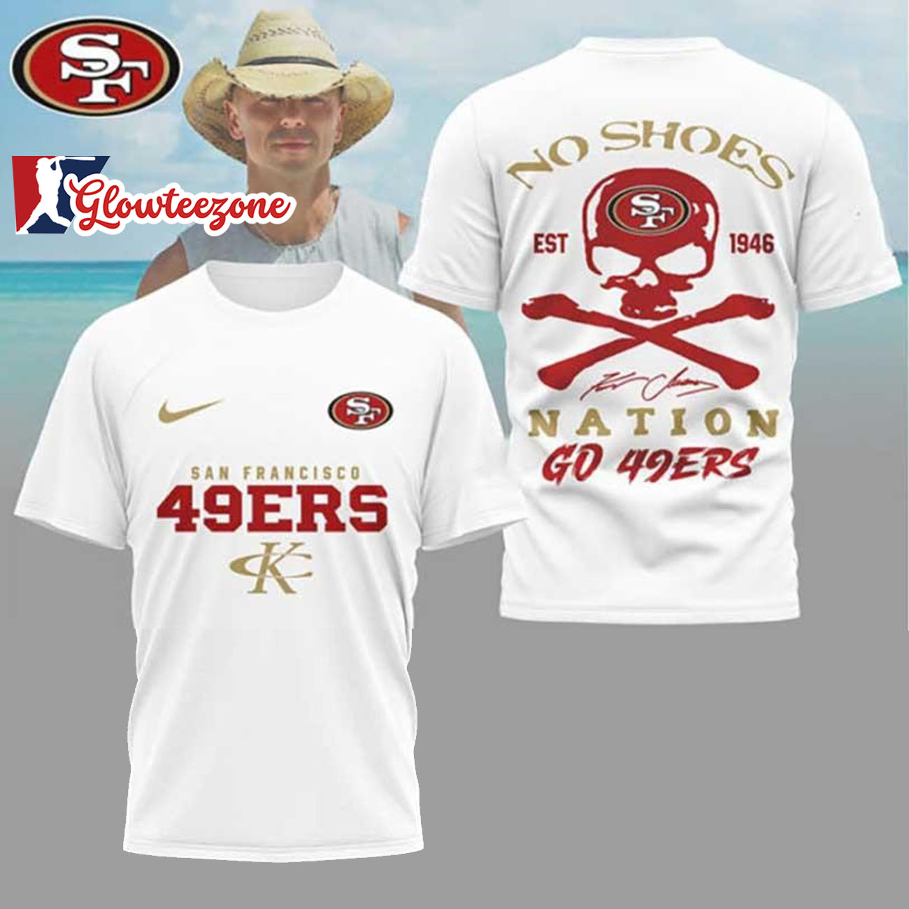 Show your belief, your pride, and your loyalty with the Kenny Chesney No Shoes Nation x San Francisco 49ers Graphic NFL 3D T-Shirt Sweatshirt Hoodie.