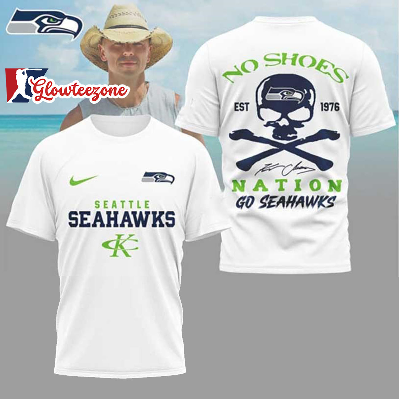 Show your belief, your pride, and your loyalty with the Kenny Chesney No Shoes Nation x Seattle Seahawks Fan NFL 3D T-Shirt Sweatshirt Hoodie.