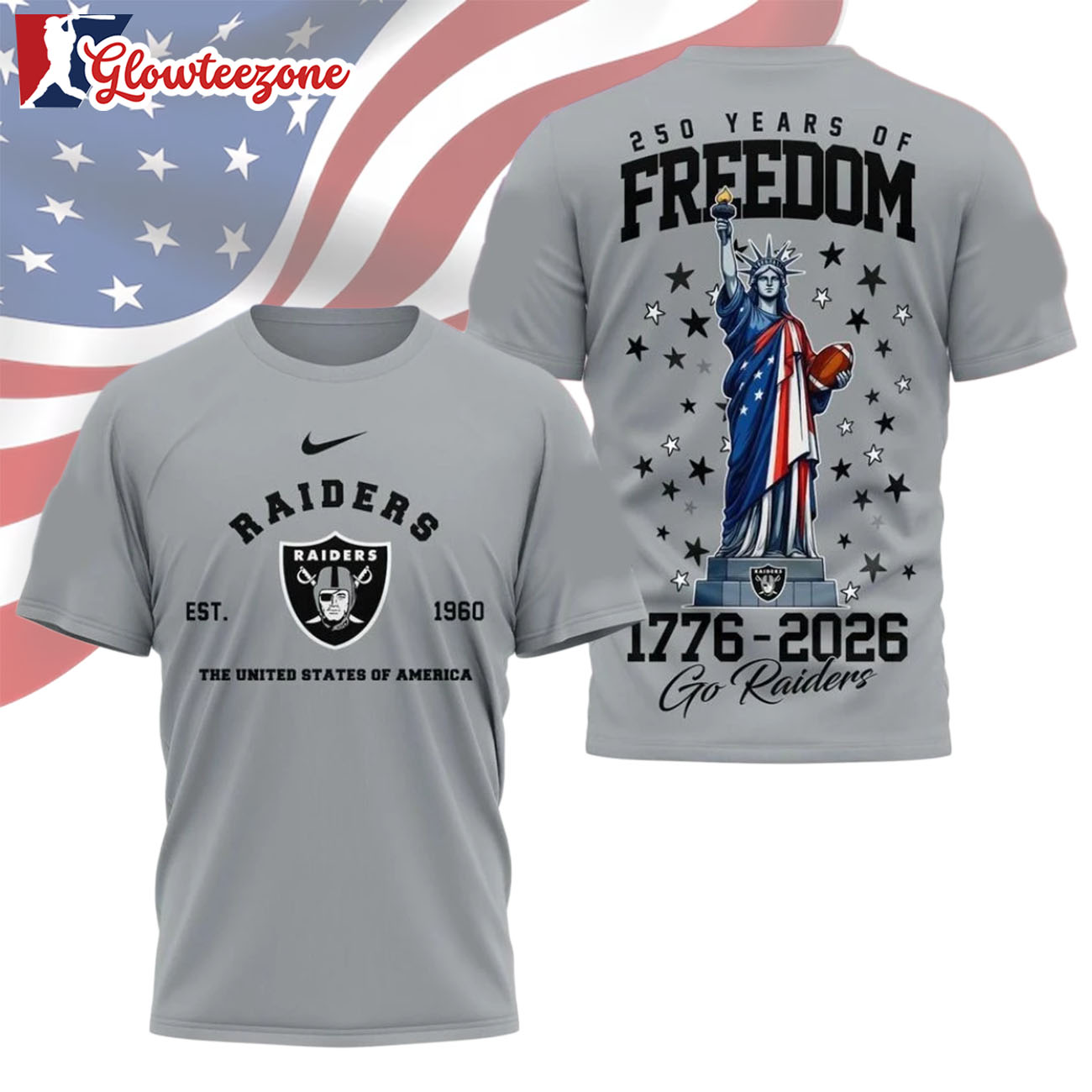 Show your belief, your pride, and your loyalty with the Las Vegas Raiders NFL 250 Years of American Freedom Logo 3D T-Shirt Sweatshirt Hoodie.