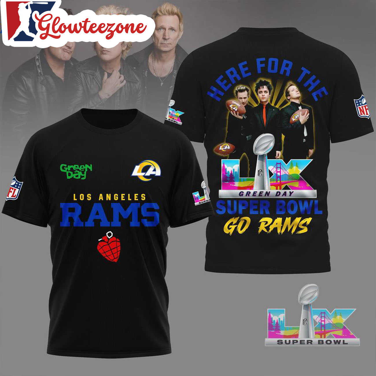 Show your belief, your pride, and your loyalty with the Los Angeles Rams 2026 Green Day Super Bowl Limited Edition Black 3D Shirt.