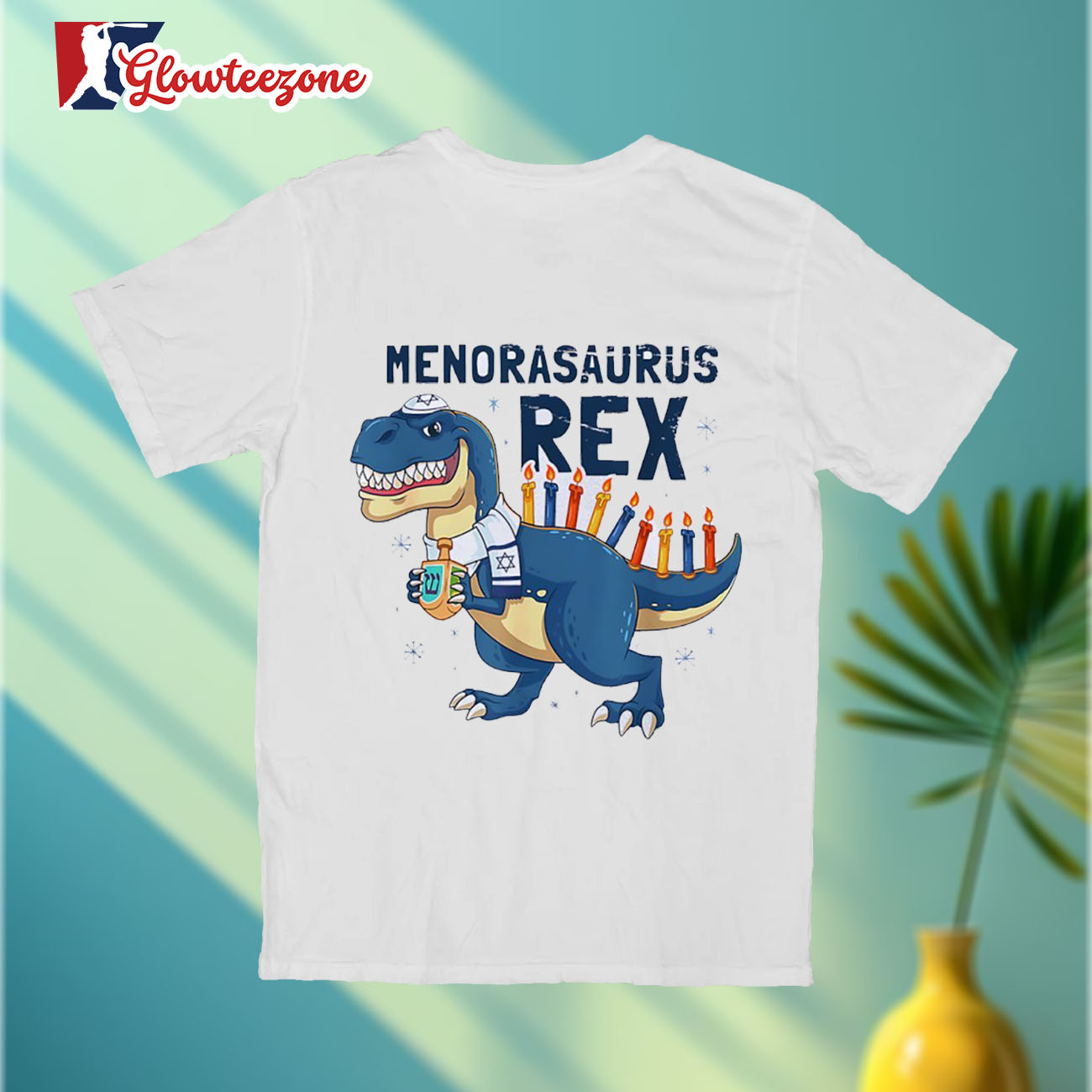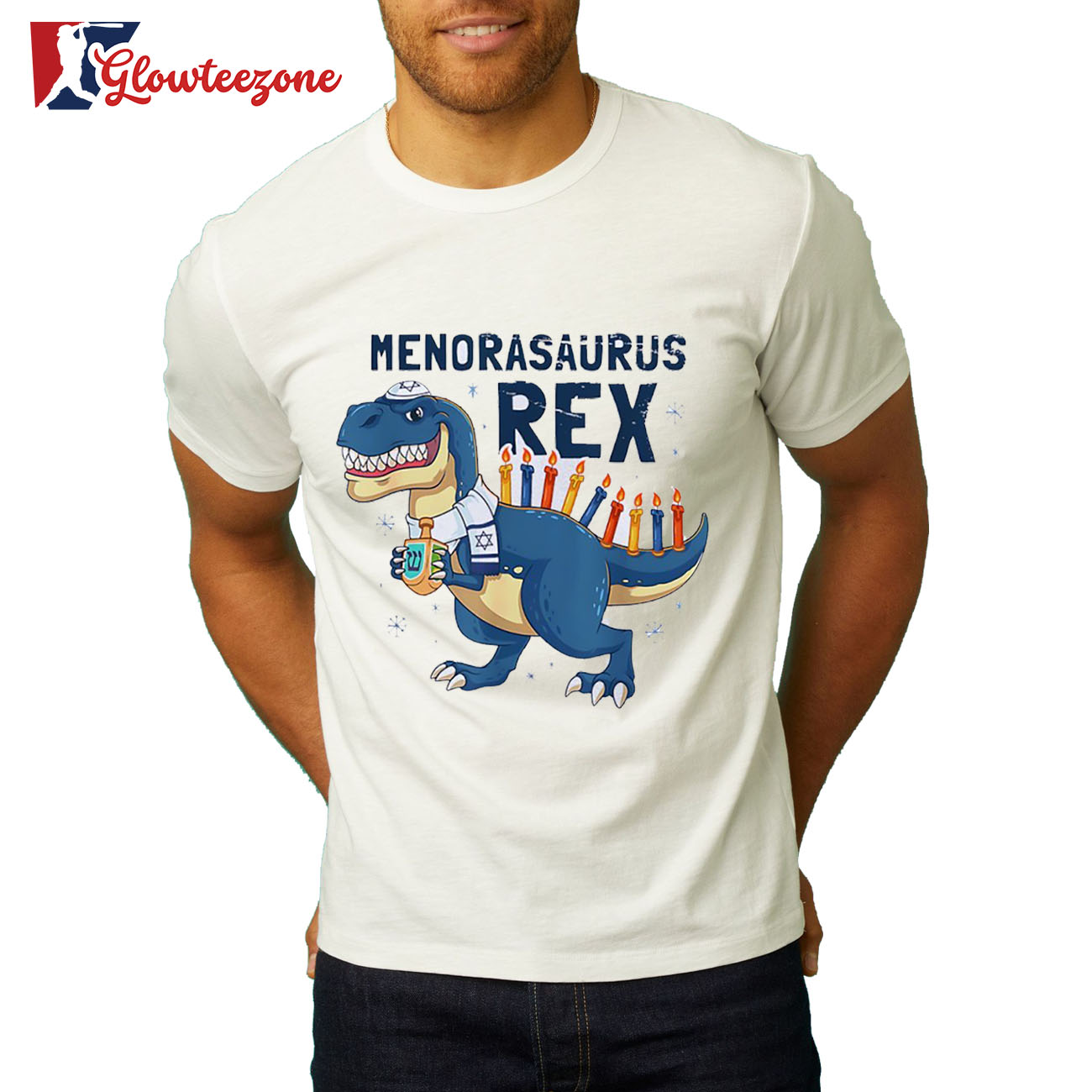 Show your belief, your pride, and your loyalty with the Menorasaurus Rex Dinosaur Hanukkah Shirt