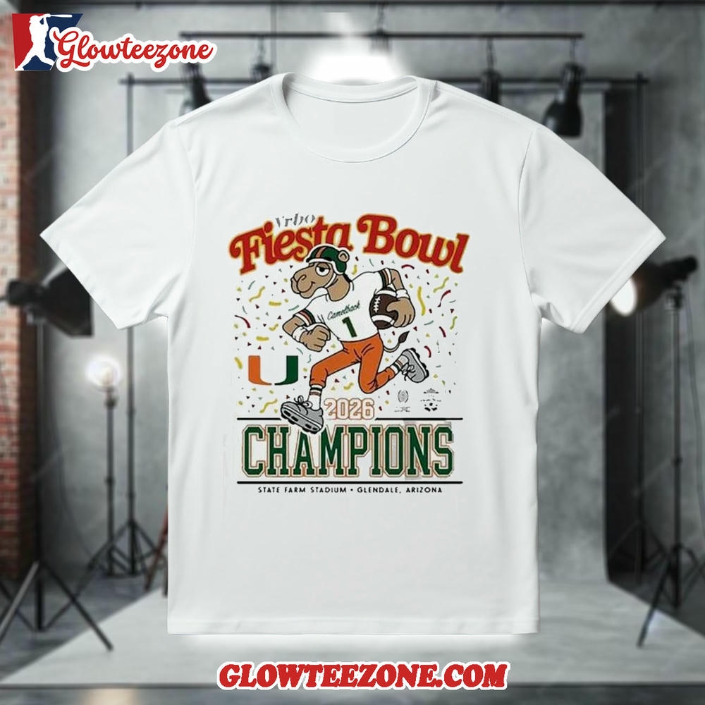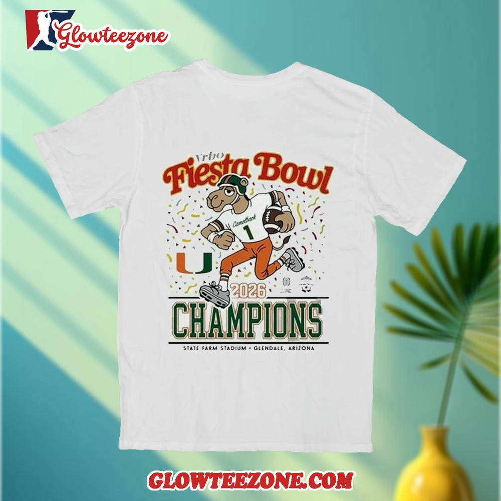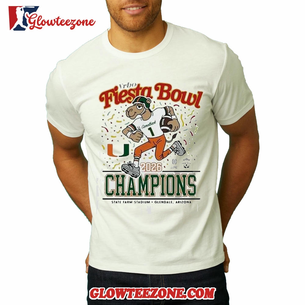 Photos Of Miami Hurricanes Vrbo Fiesta Bowl 2026 Champions Mascot Shirt