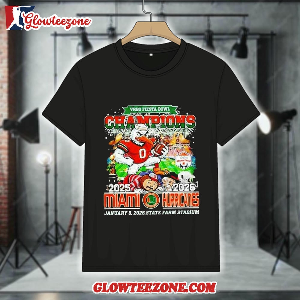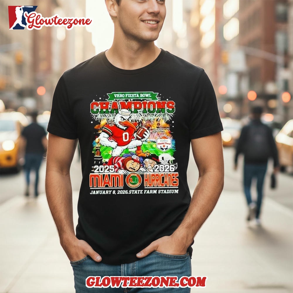 Miami Hurricanes Vrbo Fiesta Bowl Champions 2025 2026 Mascot Shirt is more than just fan apparel — it’s a clean, confident expression of true team loyalty. Designed for NFL fans who appreciate timeless style with modern attitude, this 2D shirt delivers sharp, high-quality graphics that showcase your favorite team in a bold yet balanced way. Using advanced all-over sublimation printing, every detail is crisp and vibrant, with colors that stay fresh and intact wash after wash — no cracking, peeling, or fading over time.
