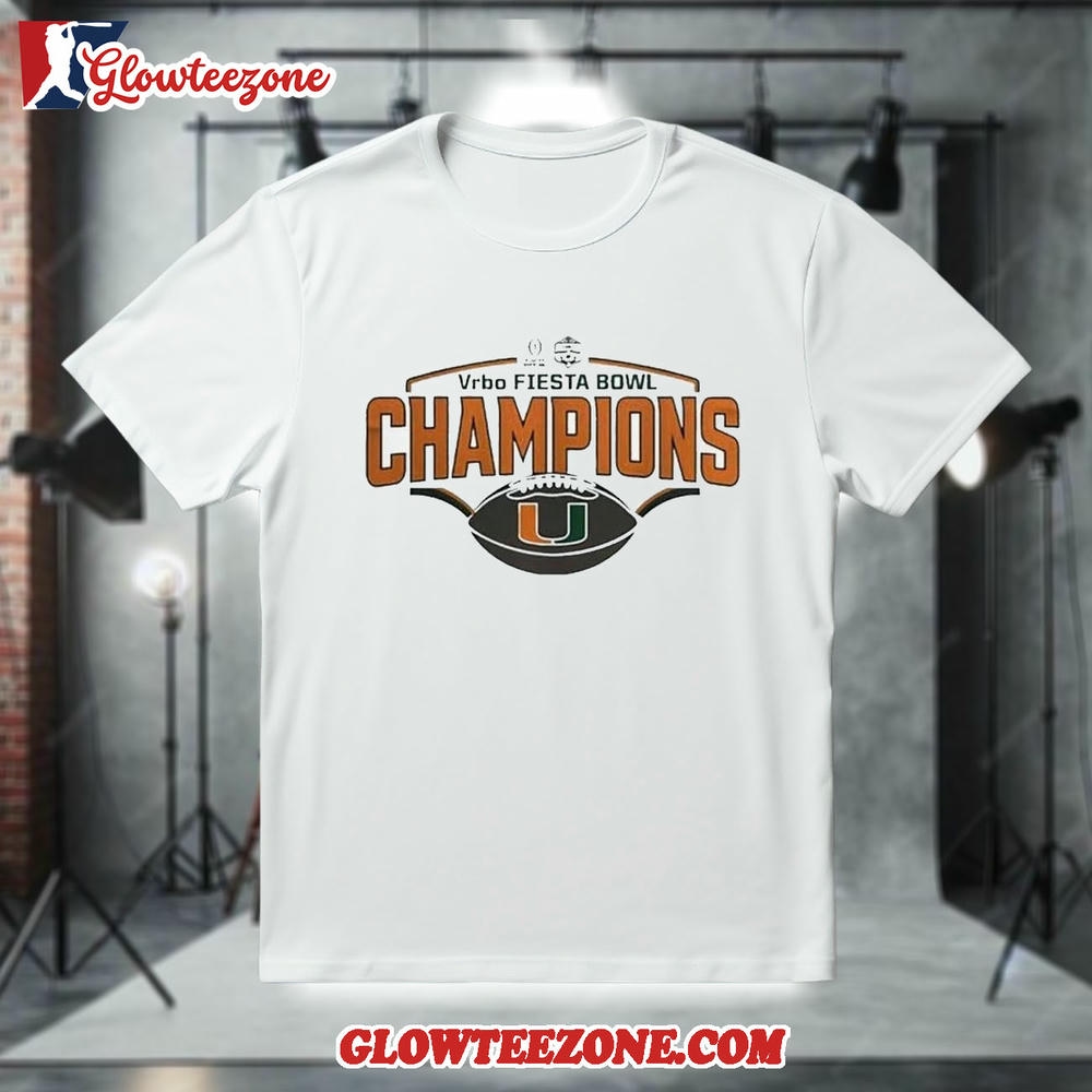 Photos Of Miami Hurricanes Vrbo Fiesta Bowl Champions 2026 Game Shirt