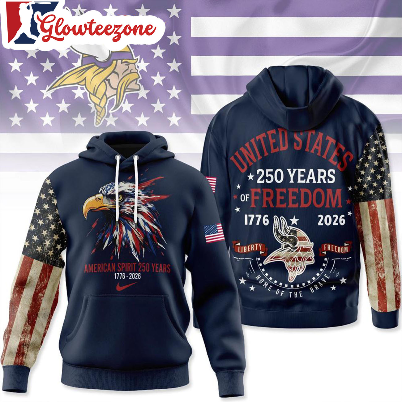 Show your belief, your pride, and your loyalty with the Minnesota Vikings 2026 NFL American Spirit 250 Years Limited 3D T-Shirt Sweatshirt Hoodie.