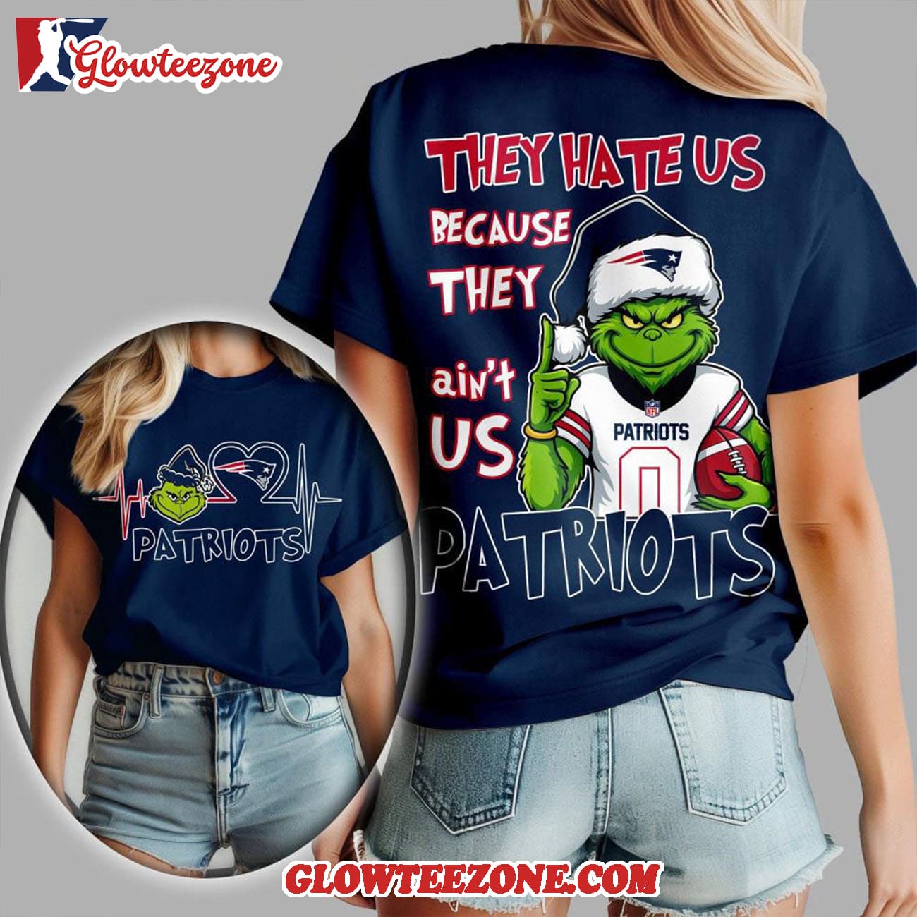 Photos Of New England Patriots 2025 Nfl Christmas Grinch They Hate Us All Over Print Shirt