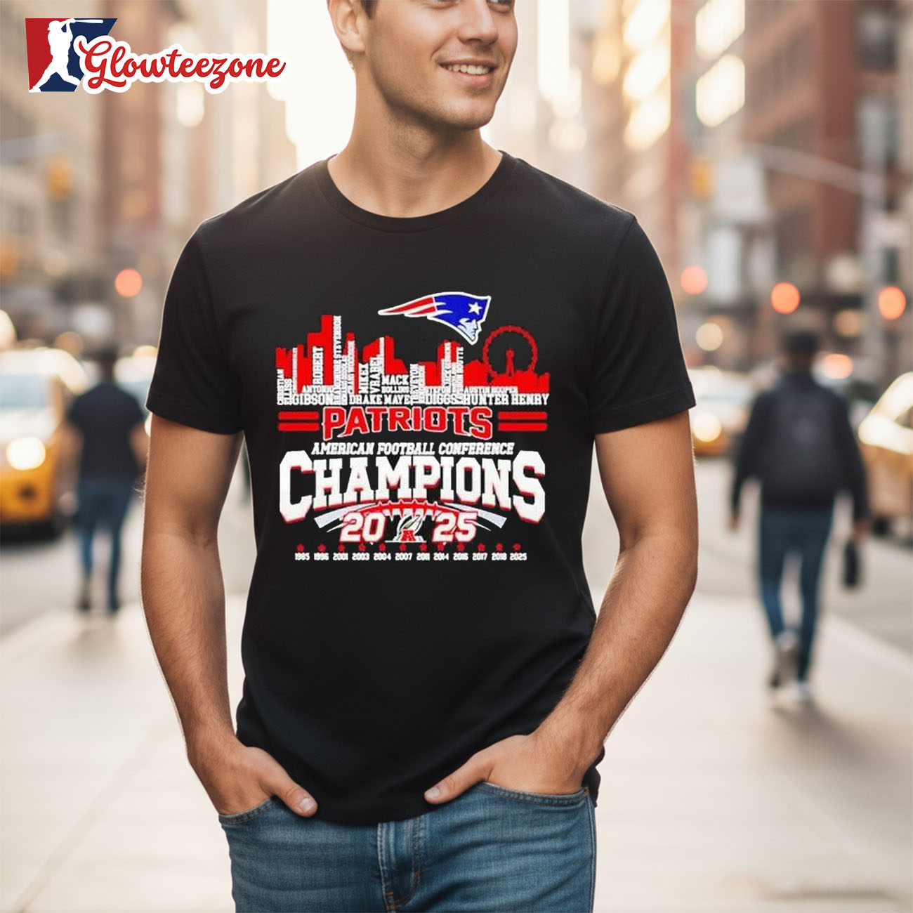 Why Fans Love New England Patriots AFC Champions 2025 12 Time Player Name City Skyline Shirt