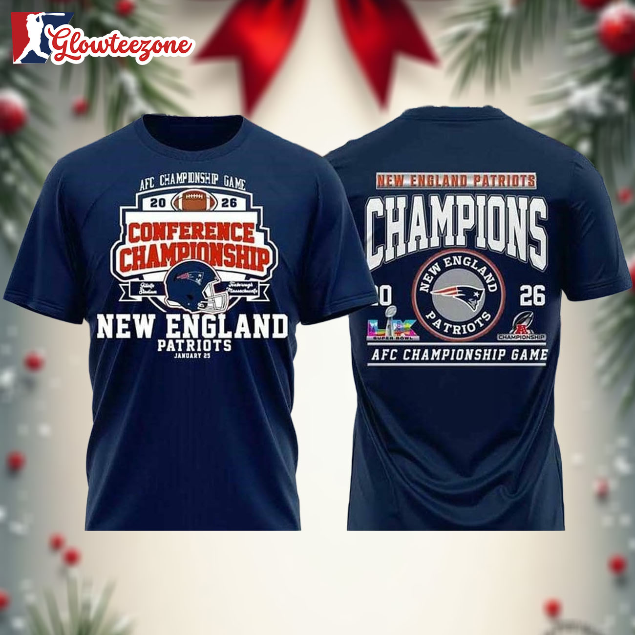 - New England Patriots 2025 AFC Champions Go Pats Two Sided Shirt