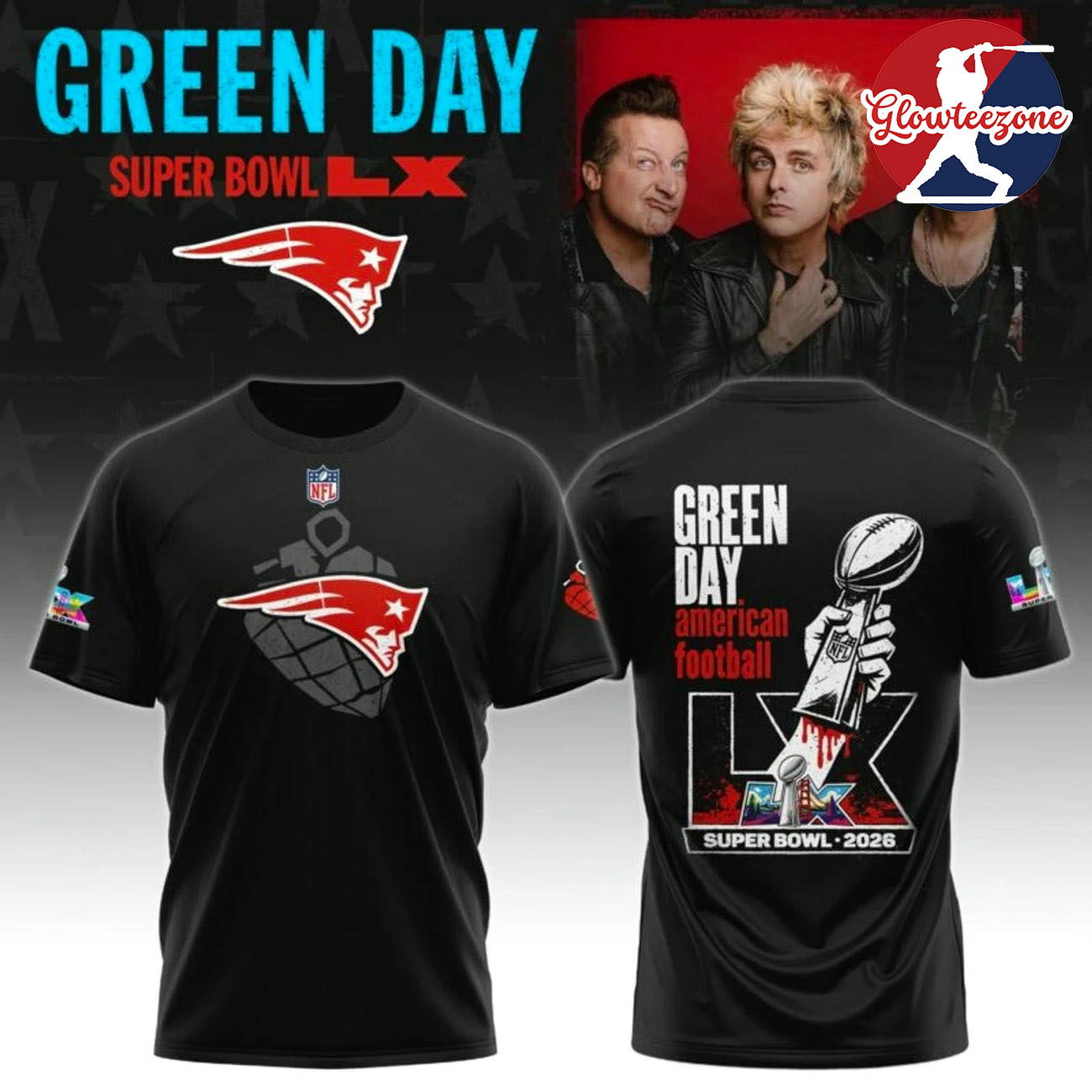 Show your belief, your pride, and your loyalty with the New England Patriots X Green Day Super Bowl Lx Punk T-shirt.