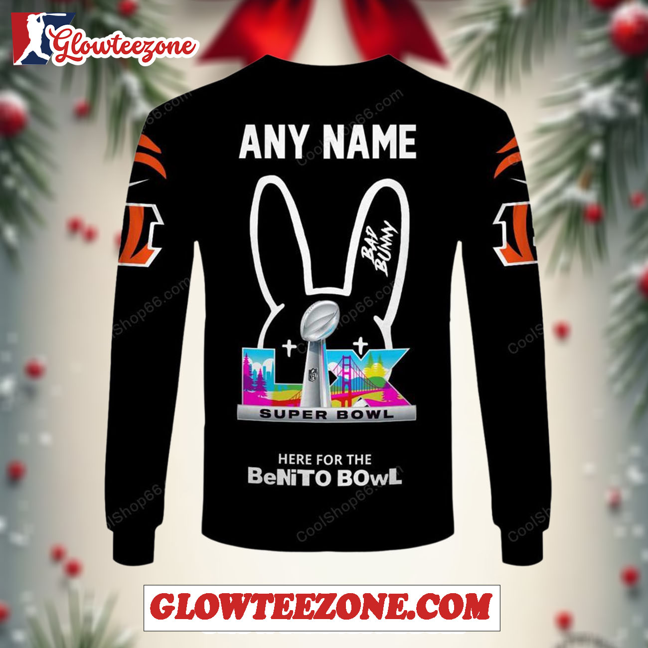Crafted from a breathable, soft-touch fabric blend, the Nfl Cincinnati Bengals X Bad Bunny Super Bowl 2026 Special Edition Custom Sweatshirt offers ultimate comfort for game days, casual outings, or everyday wear. Whether you’re cheering at the stadium, tailgating with friends, or watching from home, this shirt keeps you looking stylish while representing your team with confidence.