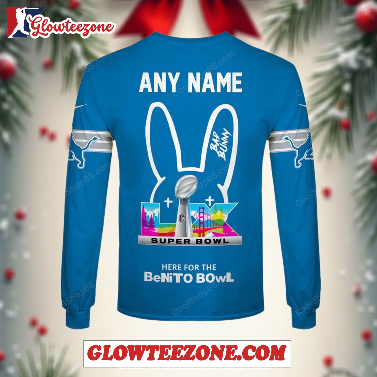 Photos Of Nfl Detroit Lions X Bad Bunny Super Bowl 2026 Special Edition Custom Sweatshirt