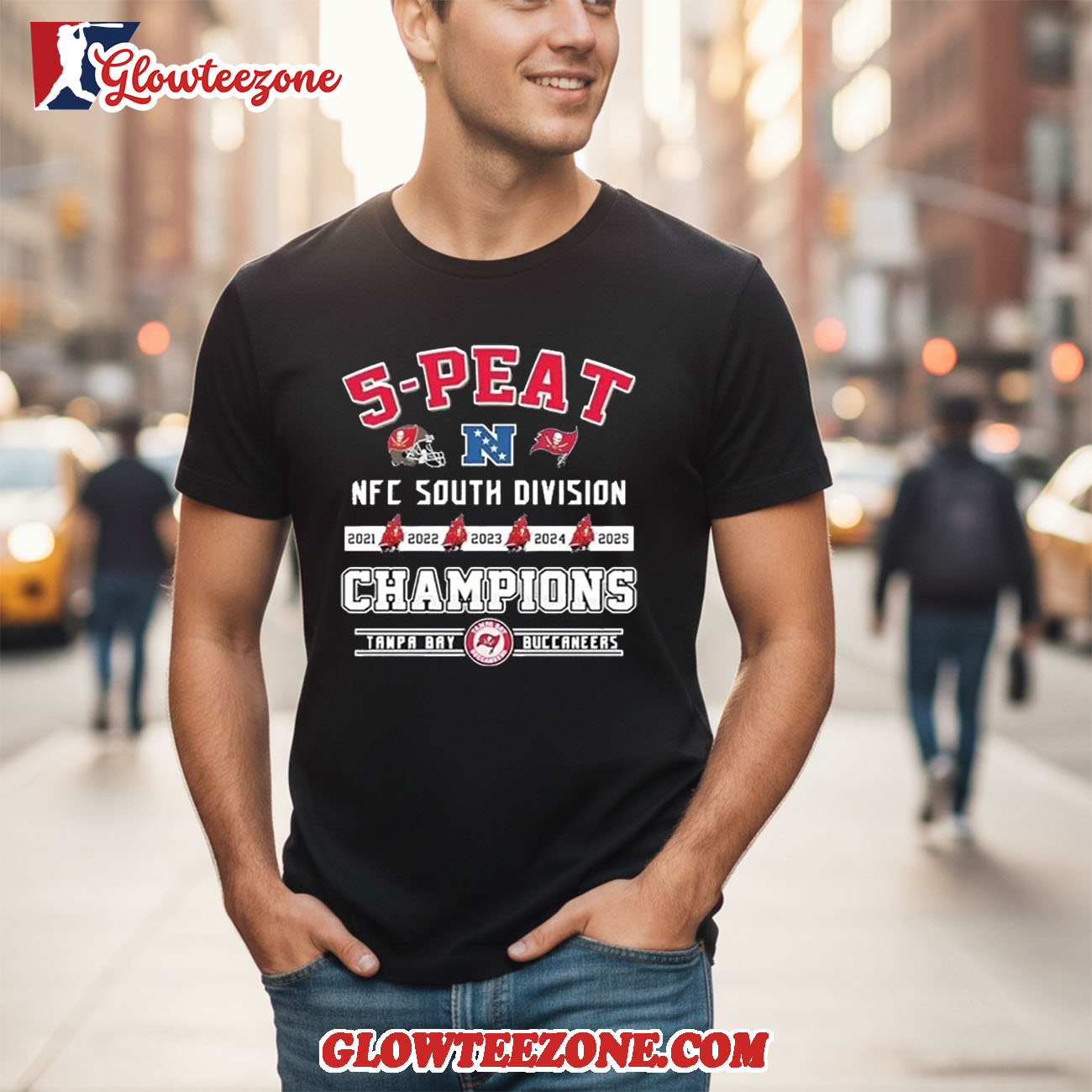 Made from a lightweight, breathable fabric blend with a soft, smooth feel, the NFL Tampa Bay Buccaneers 5 Peat NFC South Champions 2025 Shirt is built for comfort and versatility. It’s perfect for game days, tailgate parties, casual hangouts, or everyday wear when you want to represent your team without overdoing it. The 2D design keeps the look clean and wearable, making it easy to pair with jeans, shorts, or layered outfits.