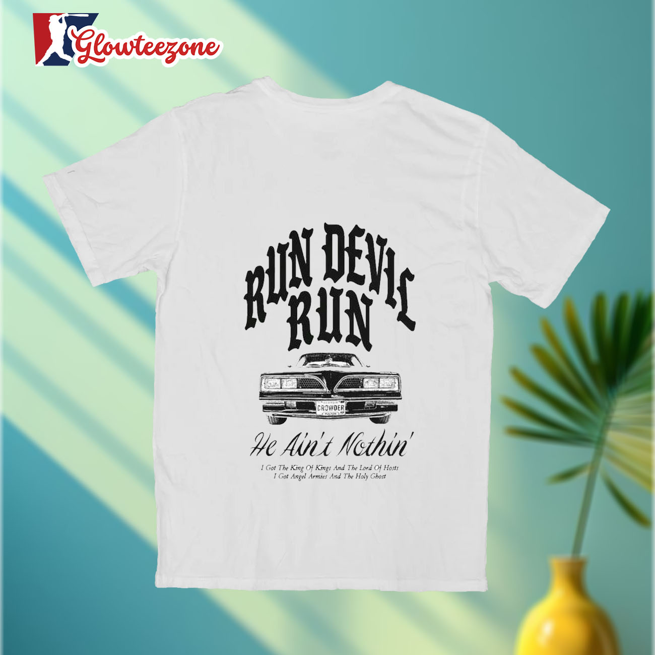 Show your belief, your pride, and your loyalty with the Run Devil Run He Aint Nothin Crowder Car T-shirts