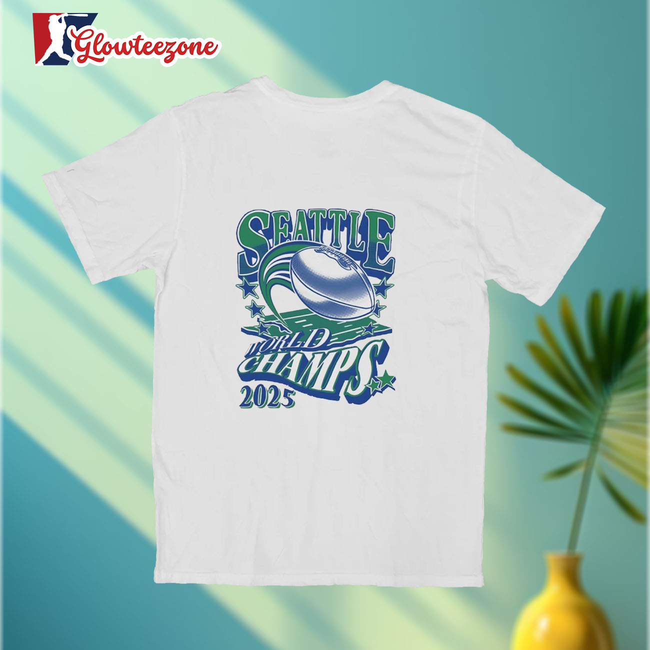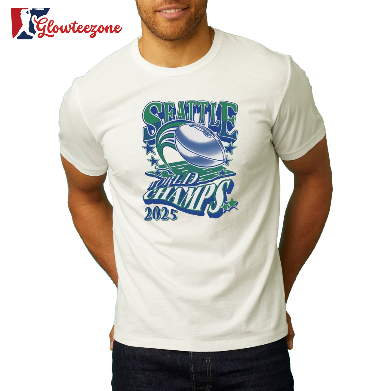 Seattle Seahawks Evergreen State Legends World Champions 2025 T-Shirt, Sweatshirt, Hoodie is more than just fan apparel — it’s a clean, confident expression of true team loyalty. Designed for NFL fans who appreciate timeless style with modern attitude, this 2D shirt delivers sharp, high-quality graphics that showcase your favorite team in a bold yet balanced way. Using advanced all-over sublimation printing, every detail is crisp and vibrant, with colors that stay fresh and intact wash after wash — no cracking, peeling, or fading over time.