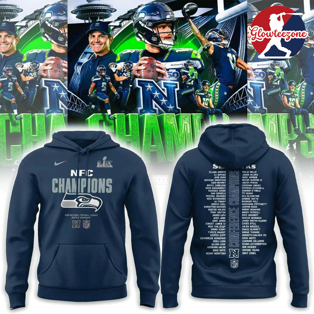 Show your belief, your pride, and your loyalty with the Seattle Seahawks NFC Champions Roster Hoodie.