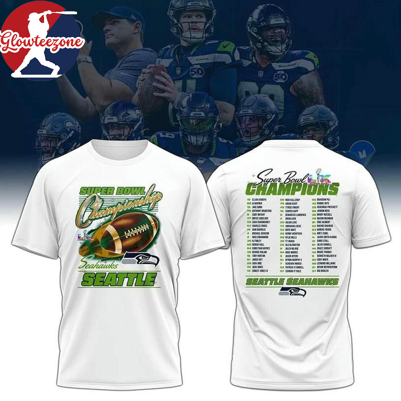 Show your belief, your pride, and your loyalty with the Seattle Seahawks Super Bowl LX Champions Two Sided Shirt.