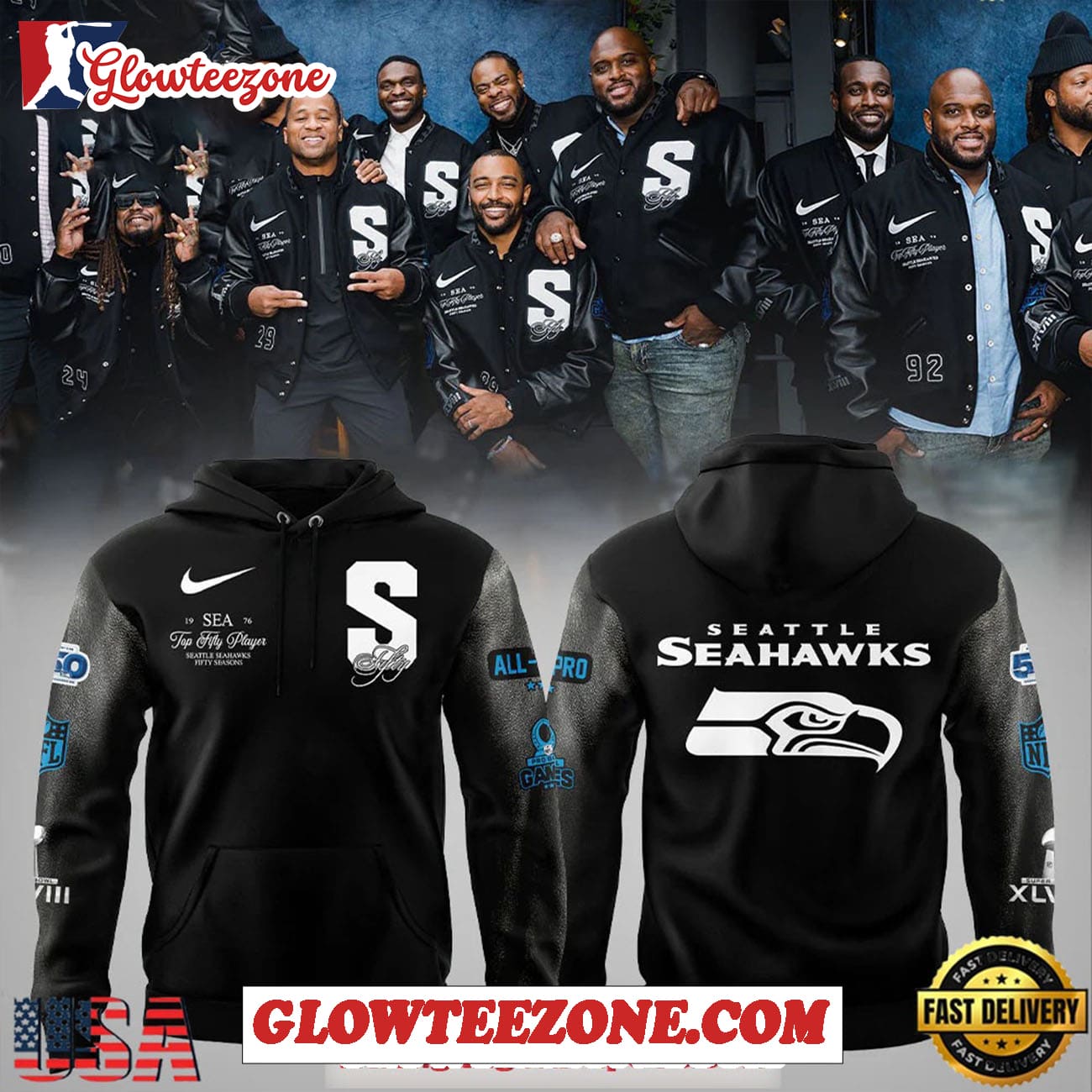 Seattle Seahawks Top Fifty Player Limited All Over Print Hoodie is more than just fan apparel — it’s a bold statement of passion and pride. Designed exclusively for NFL supporters who love to stand out, this 3D shirt brings your favorite team’s spirit to life with eye-catching, high-definition graphics and premium craftsmanship. Each shirt is printed using advanced sublimation technology, ensuring vivid colors that never fade, crack, or peel — even after countless washes.