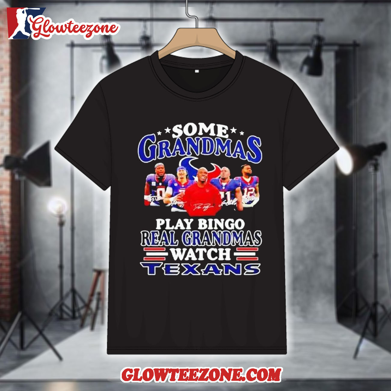 Show your belief, your pride, and your loyalty with the Some Grandmas Play Bingo Real Grandmas Watch Houston Texans Signatures 2026 Shirt