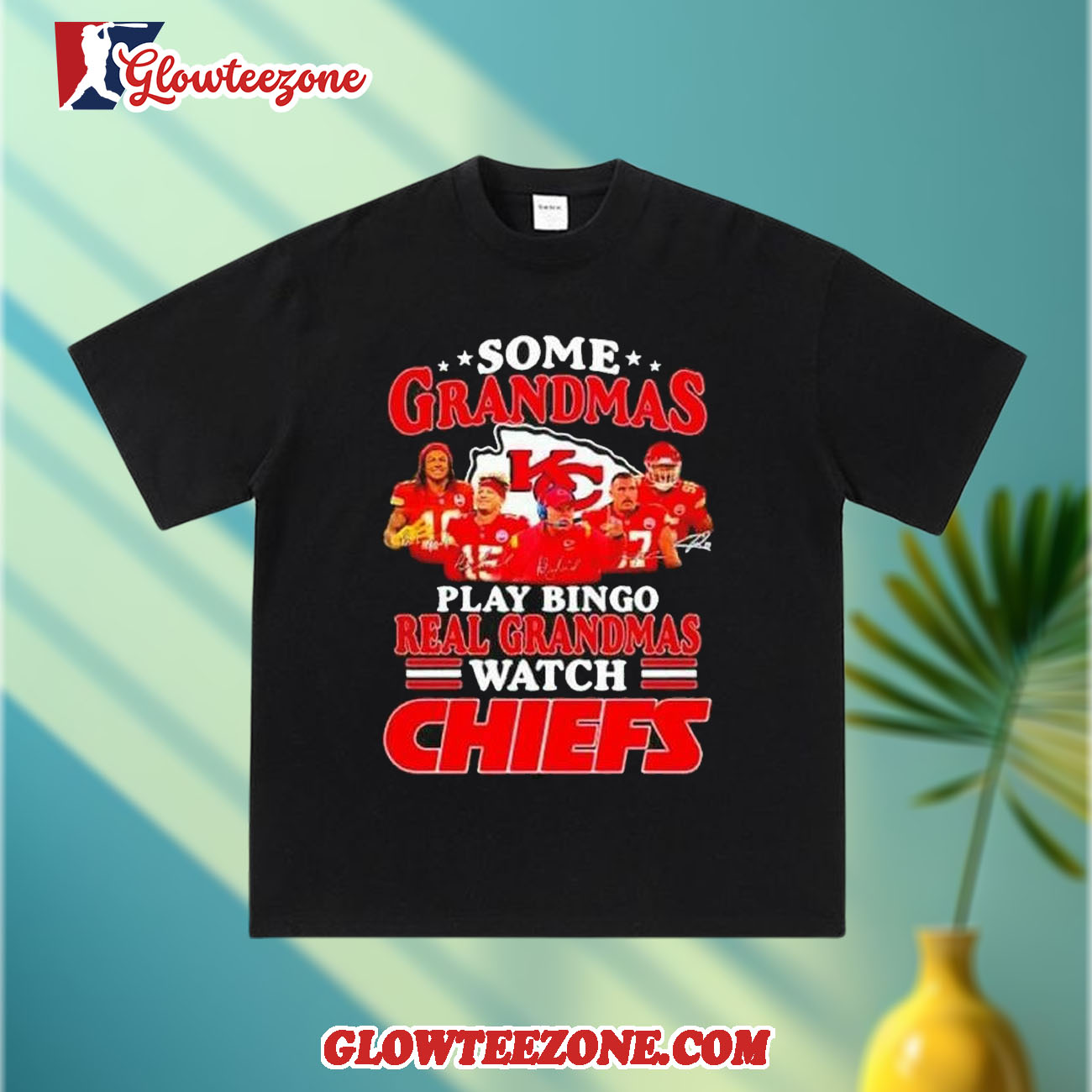 Show your belief, your pride, and your loyalty with the Some Grandmas Play Bingo Real Grandmas Watch Kansas City Chiefs Signatures 2026 Shirt