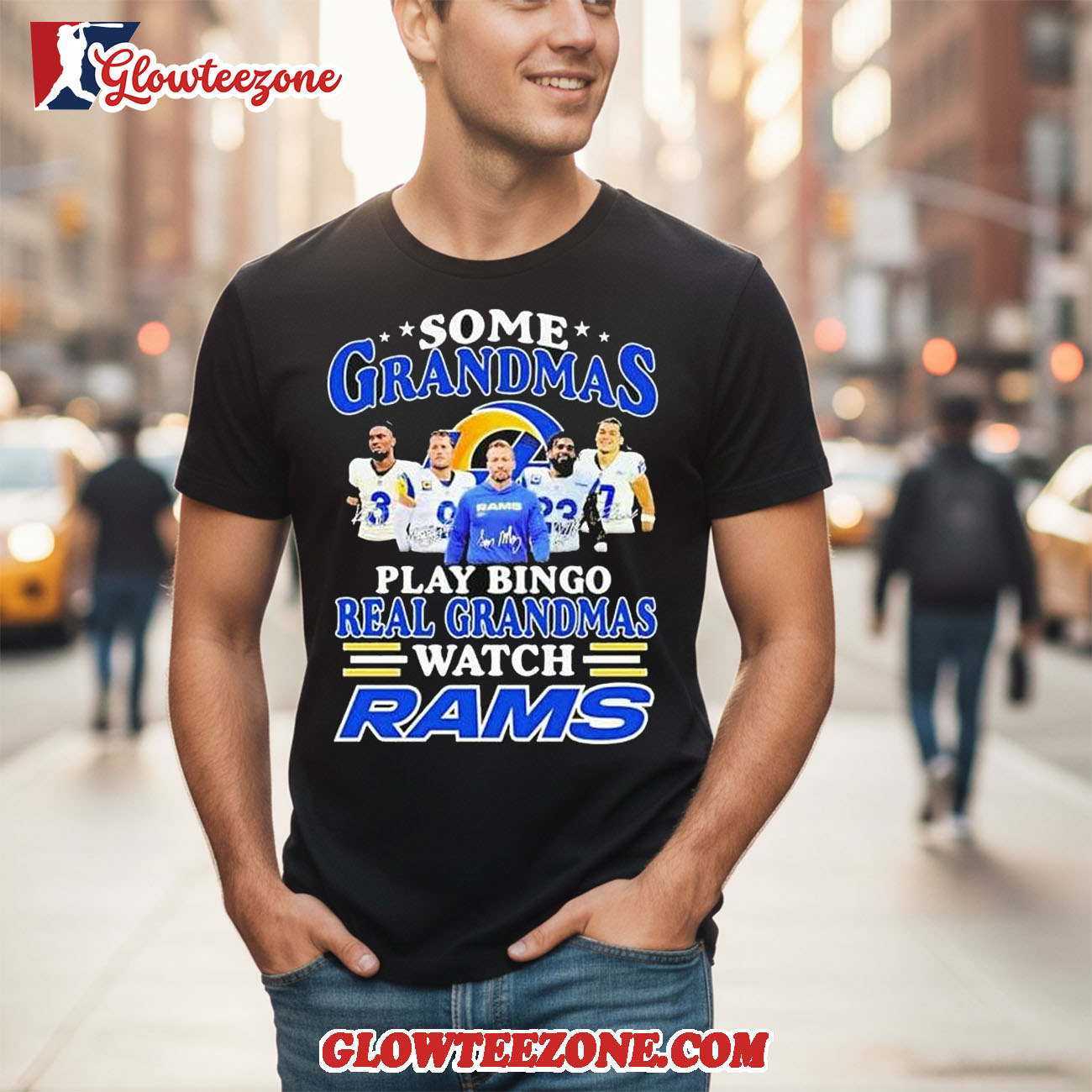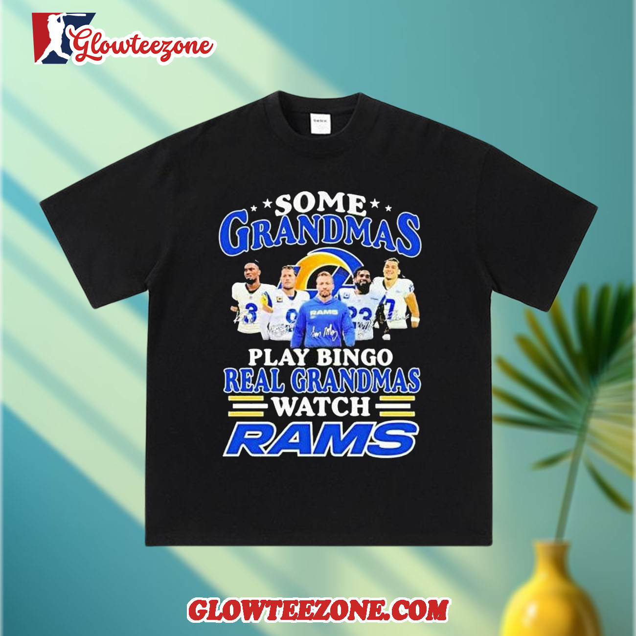 Some Grandmas Play Bingo Real Grandmas Watch Los Angeles Rams Signatures 2026 Shirt is more than just fan apparel — it’s a clean, confident expression of true team loyalty. Designed for NFL fans who appreciate timeless style with modern attitude, this 2D shirt delivers sharp, high-quality graphics that showcase your favorite team in a bold yet balanced way. Using advanced all-over sublimation printing, every detail is crisp and vibrant, with colors that stay fresh and intact wash after wash — no cracking, peeling, or fading over time.