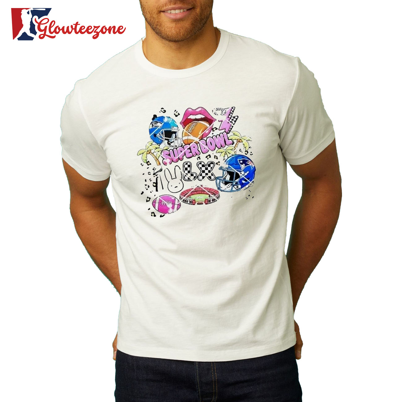 Super Bowl Leopard Stadium & Helmet Design Super Bowl Patriots And Seahawks T-shirt is more than just fan apparel — it’s a clean, confident expression of true team loyalty. Designed for NFL fans who appreciate timeless style with modern attitude, this 2D shirt delivers sharp, high-quality graphics that showcase your favorite team in a bold yet balanced way. Using advanced all-over sublimation printing, every detail is crisp and vibrant, with colors that stay fresh and intact wash after wash — no cracking, peeling, or fading over time.