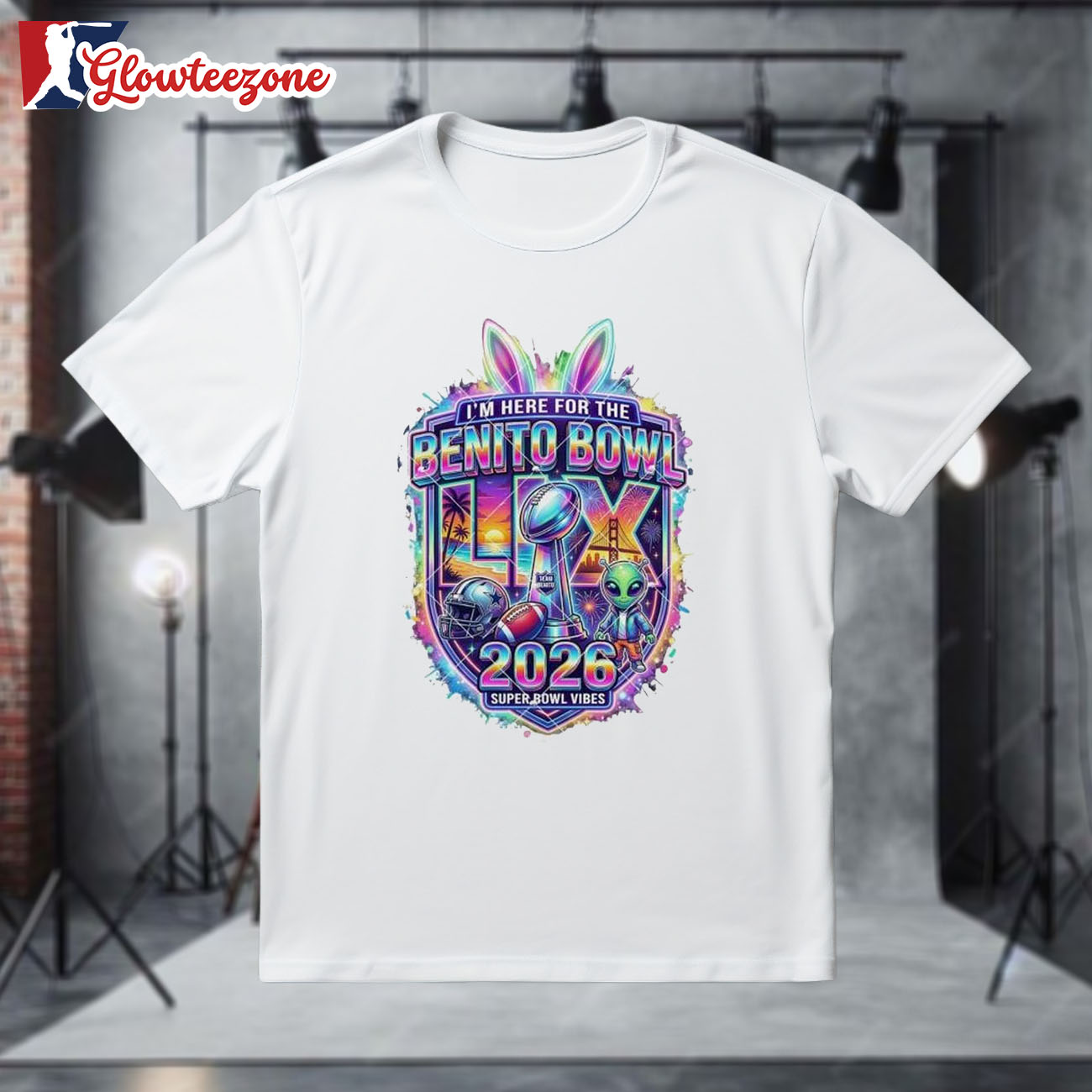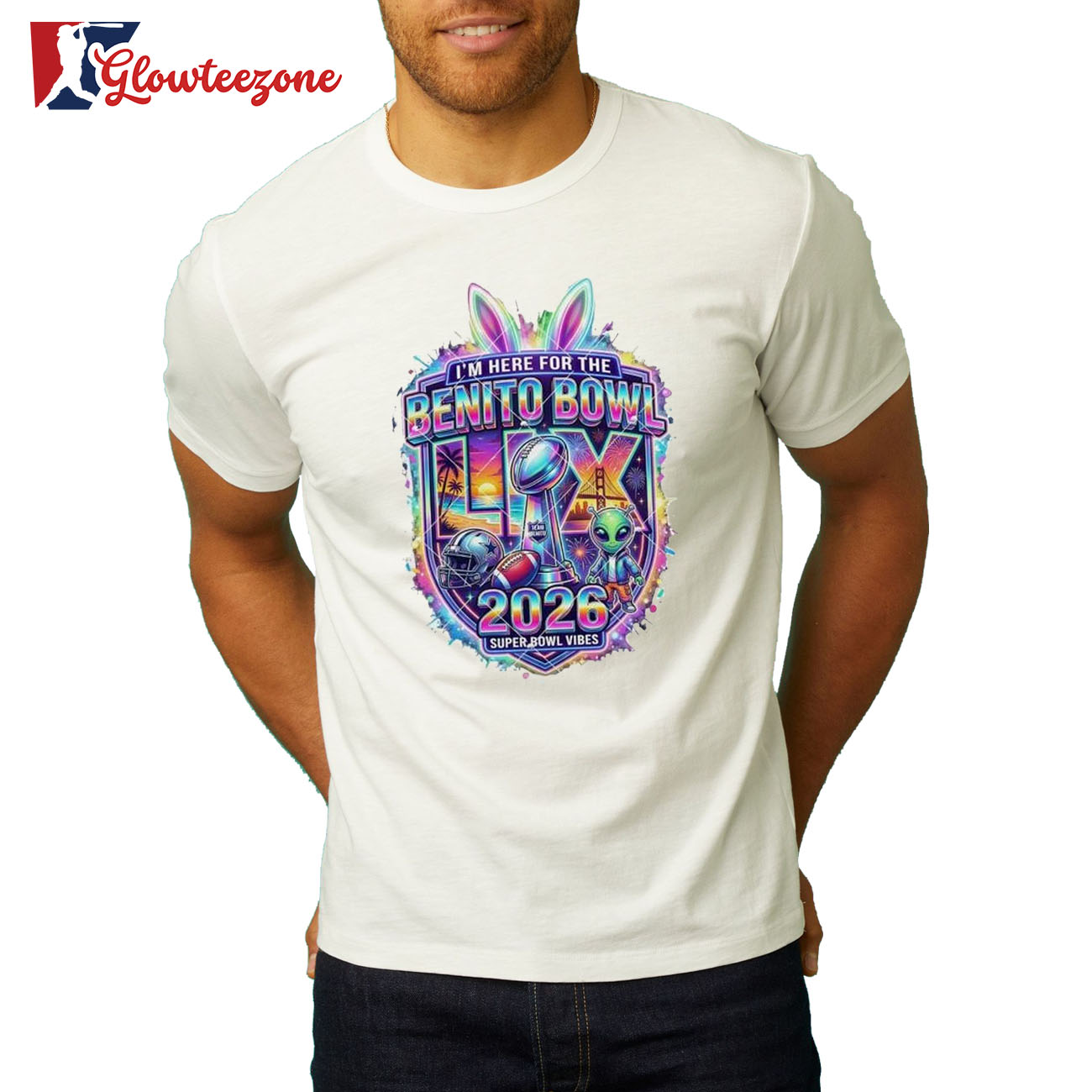 Super Bowl LX 2026 Im Here For The Benito Bowl Shirt is more than just fan apparel — it’s a clean, confident expression of true team loyalty. Designed for NFL fans who appreciate timeless style with modern attitude, this 2D shirt delivers sharp, high-quality graphics that showcase your favorite team in a bold yet balanced way. Using advanced all-over sublimation printing, every detail is crisp and vibrant, with colors that stay fresh and intact wash after wash — no cracking, peeling, or fading over time.