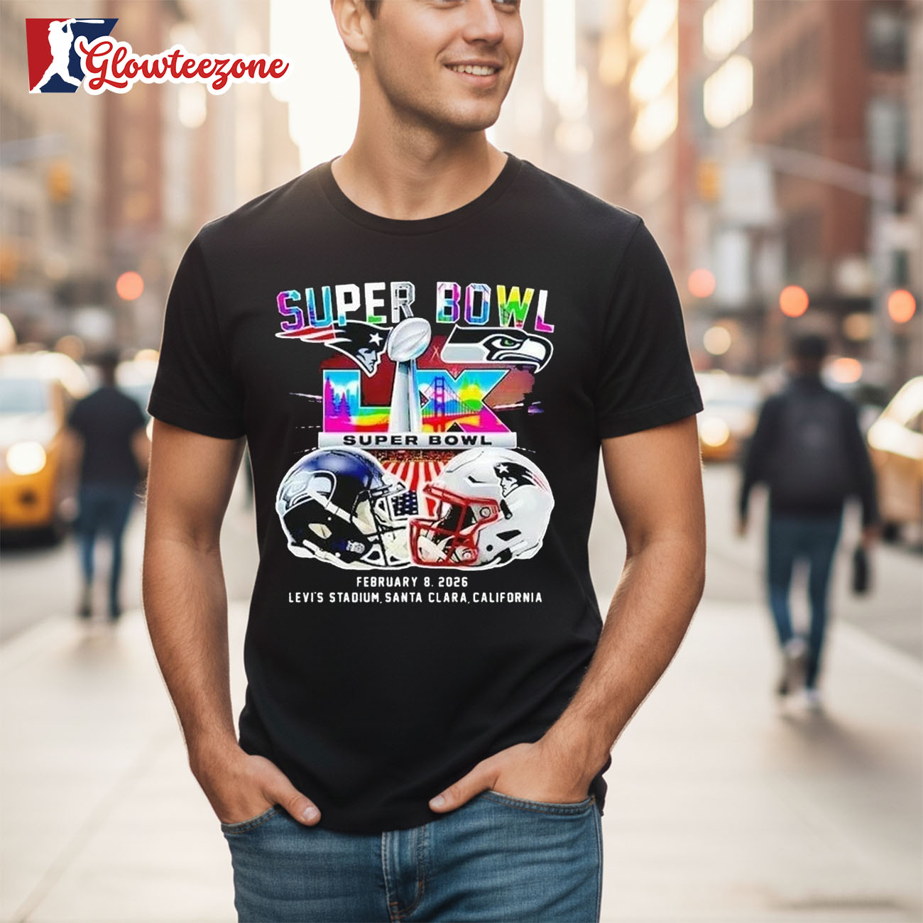 Super Bowl LX 2026 Patriots Vs Seahawks Levis Stadium T-shirt is more than just fan apparel — it’s a clean, confident expression of true team loyalty. Designed for NFL fans who appreciate timeless style with modern attitude, this 2D shirt delivers sharp, high-quality graphics that showcase your favorite team in a bold yet balanced way. Using advanced all-over sublimation printing, every detail is crisp and vibrant, with colors that stay fresh and intact wash after wash — no cracking, peeling, or fading over time.